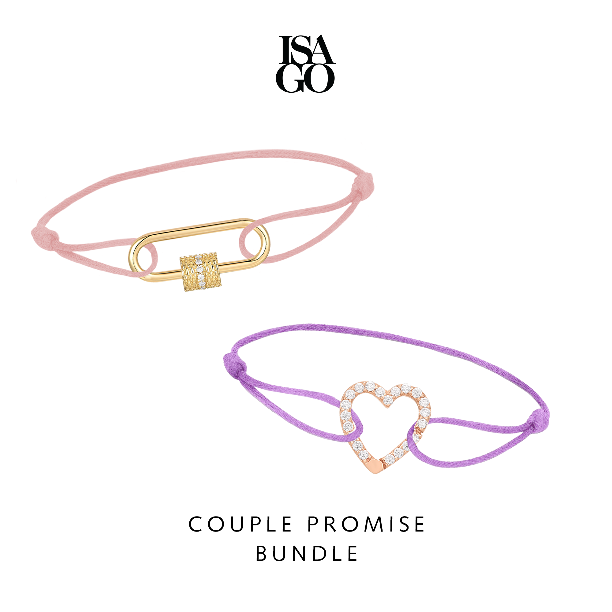 COUPLE PROMISE BUNDLE Carabiner Pavé Link + Heart Pavé Link Bracelet