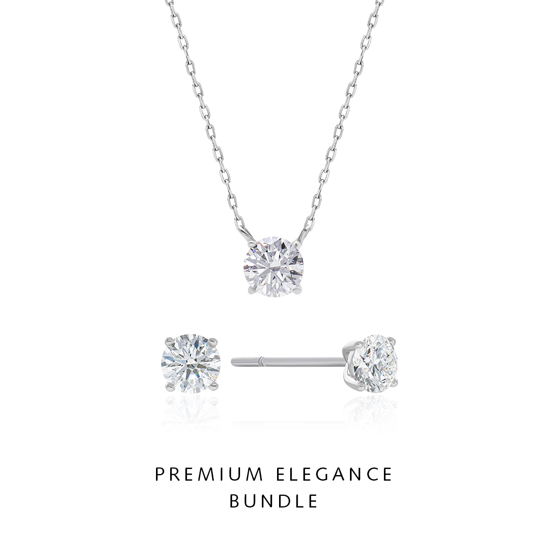 PREMIUM ELEGANCE BUNDLE Round Solitaire Studs + Round Solitaire Necklace