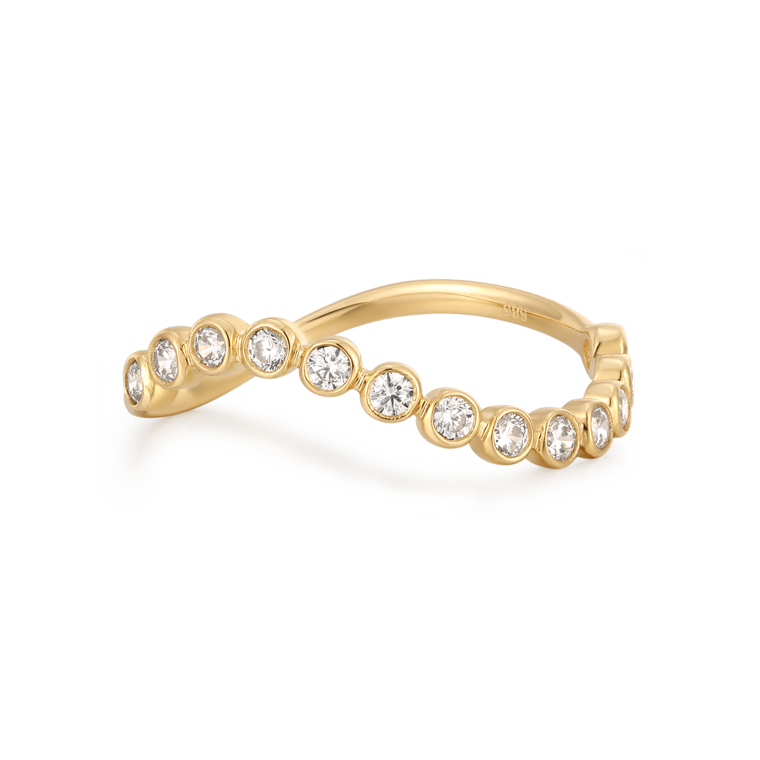 Add some pizzazz to your style with this stunning statement piece. This handcrafted ring is made with 14k recycled gold and bezel-set lab grown diamonds, and is sure to stand out!