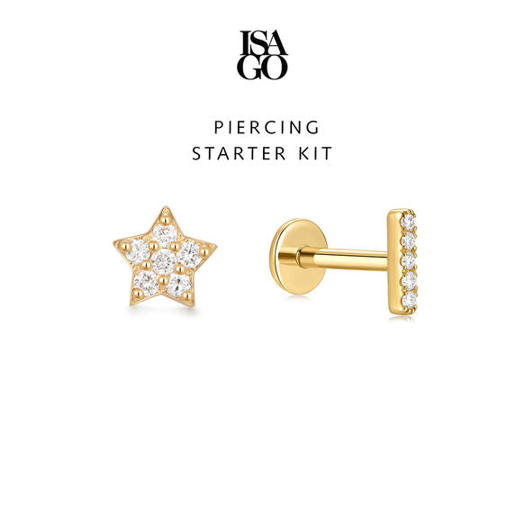 PIERCING STARTER KIT Star Flatback Studs + Line Bar Flatback Studs