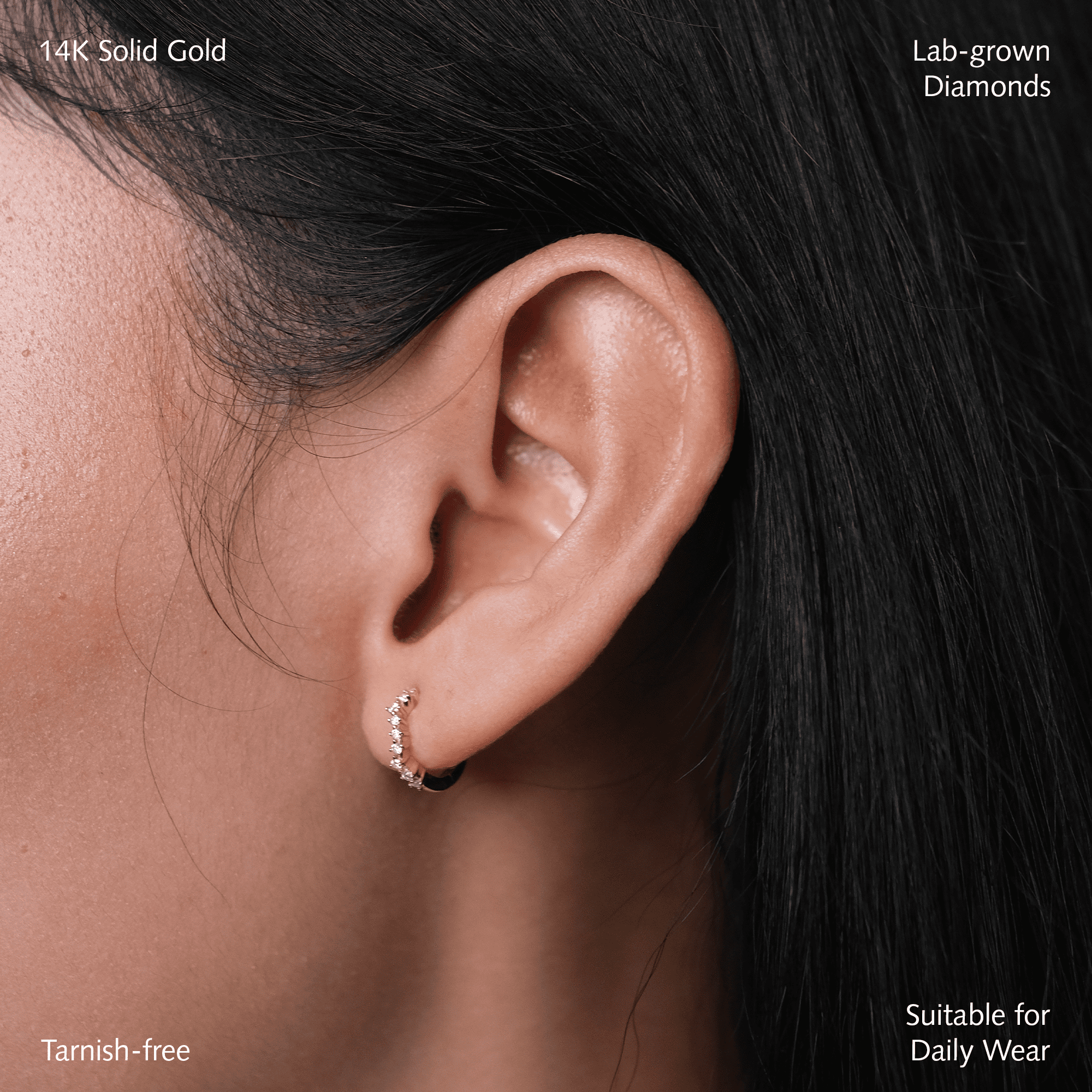 Our creations are made with love from luxe materials like 14K recycled solid gold and sparkly lab-grown diamonds—no brass or steel here—so you can wear them proudly.