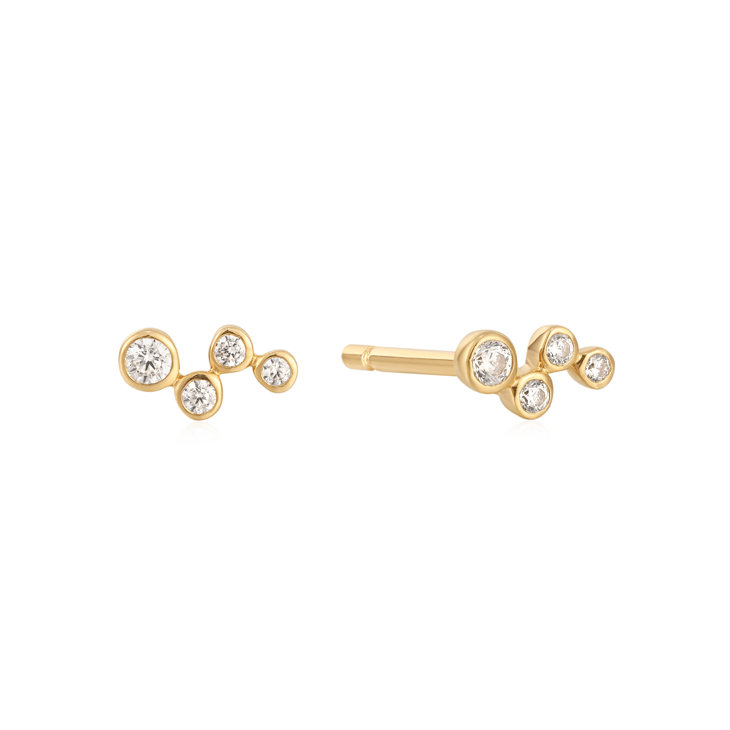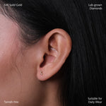 Add some pizzazz to your style with this stunning statement piece. These handcrafted studs are made with 14k recycled gold and bezel-set lab grown diamonds, and is sure to stand out!