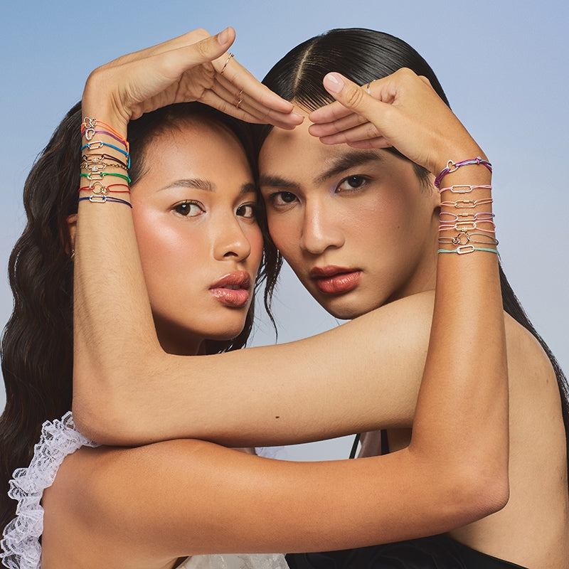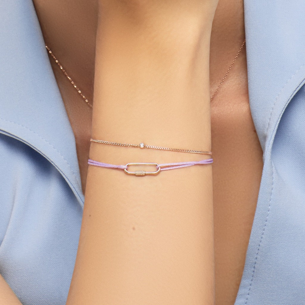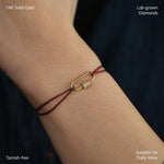 This customizable 'Linked' cord bracelet exudes the essence of individuality and bond with its distinctive toggle link design crafted from solid 14kt gold and pavé lab-grown diamonds. Versatile for daily use, it offers a platform for self-expression through its various thread colors and endless possibilities for charm attachments. Which color cord will you select? Whether you want a discreet yet special bracelet to match with your bff or significant other - this is the perfect choice for you!