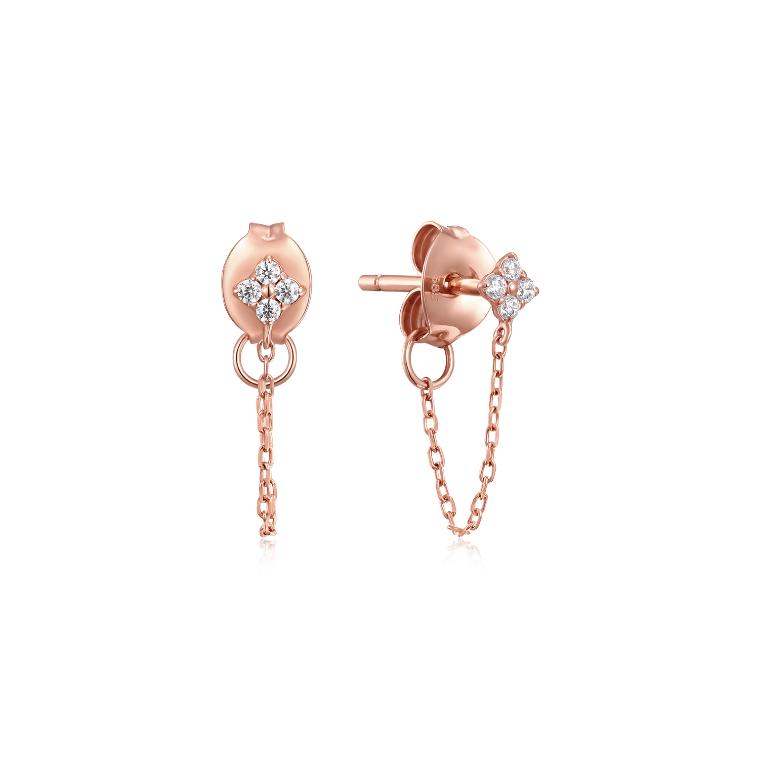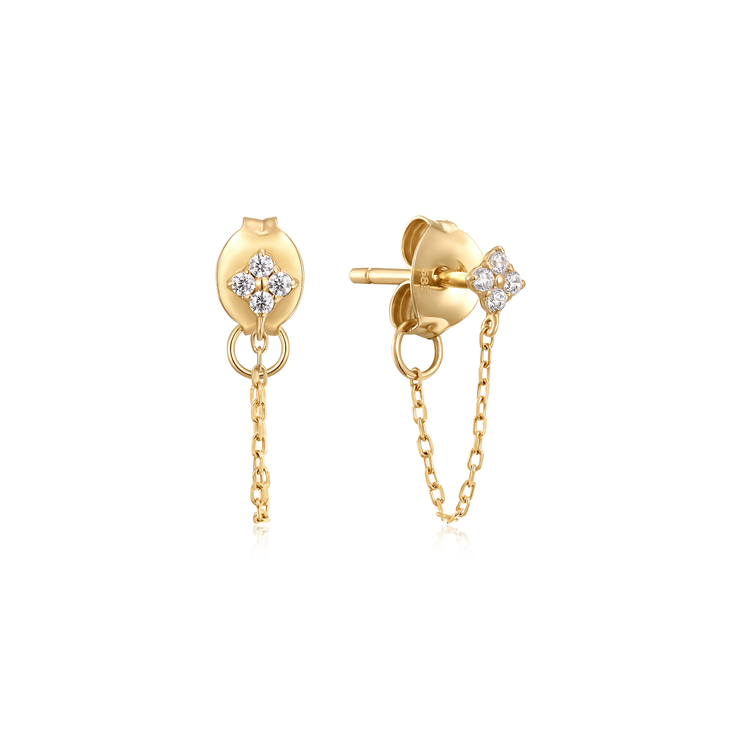 These clover-shaped diamond studs are not your average ones - with a unique chain detail, they add a dynamic touch to any outfit.