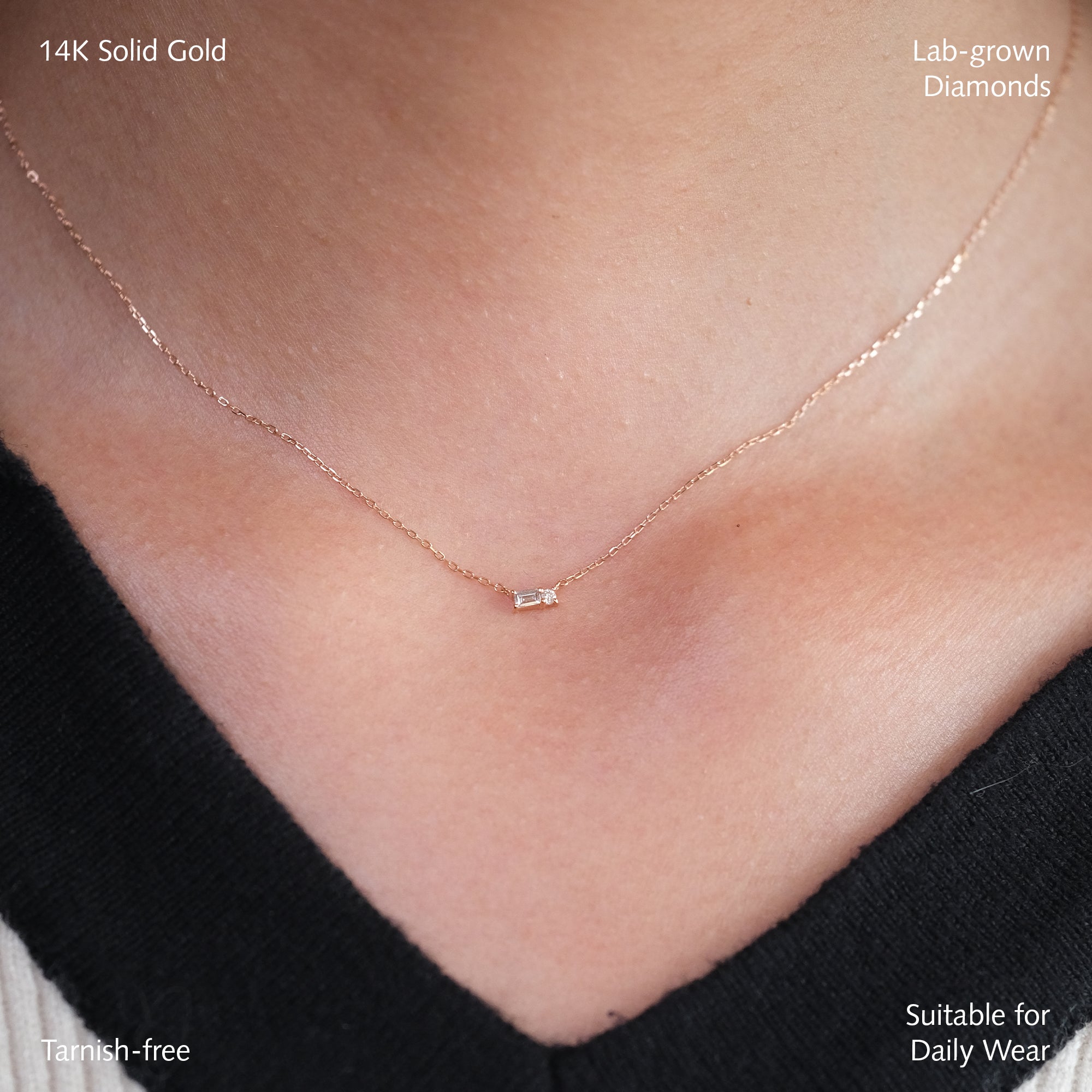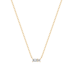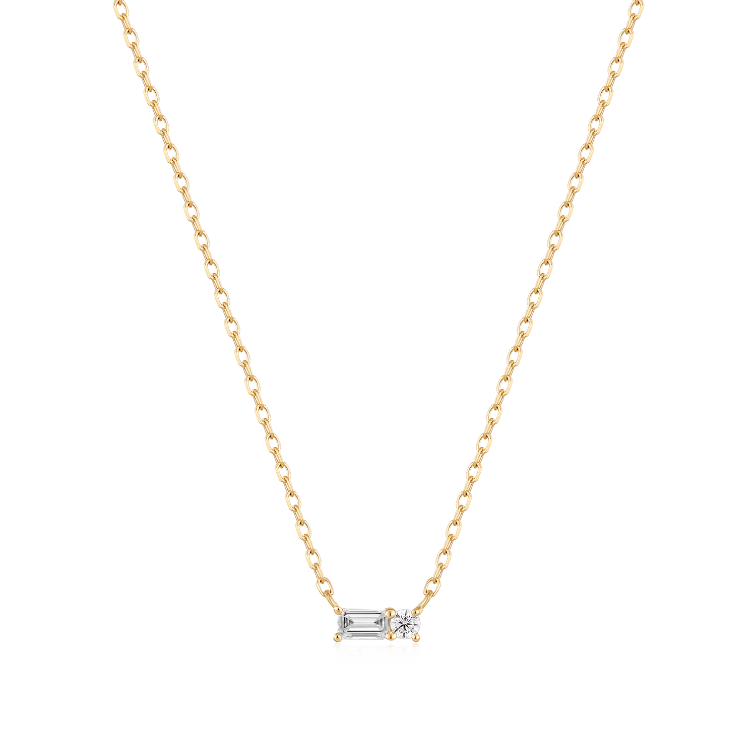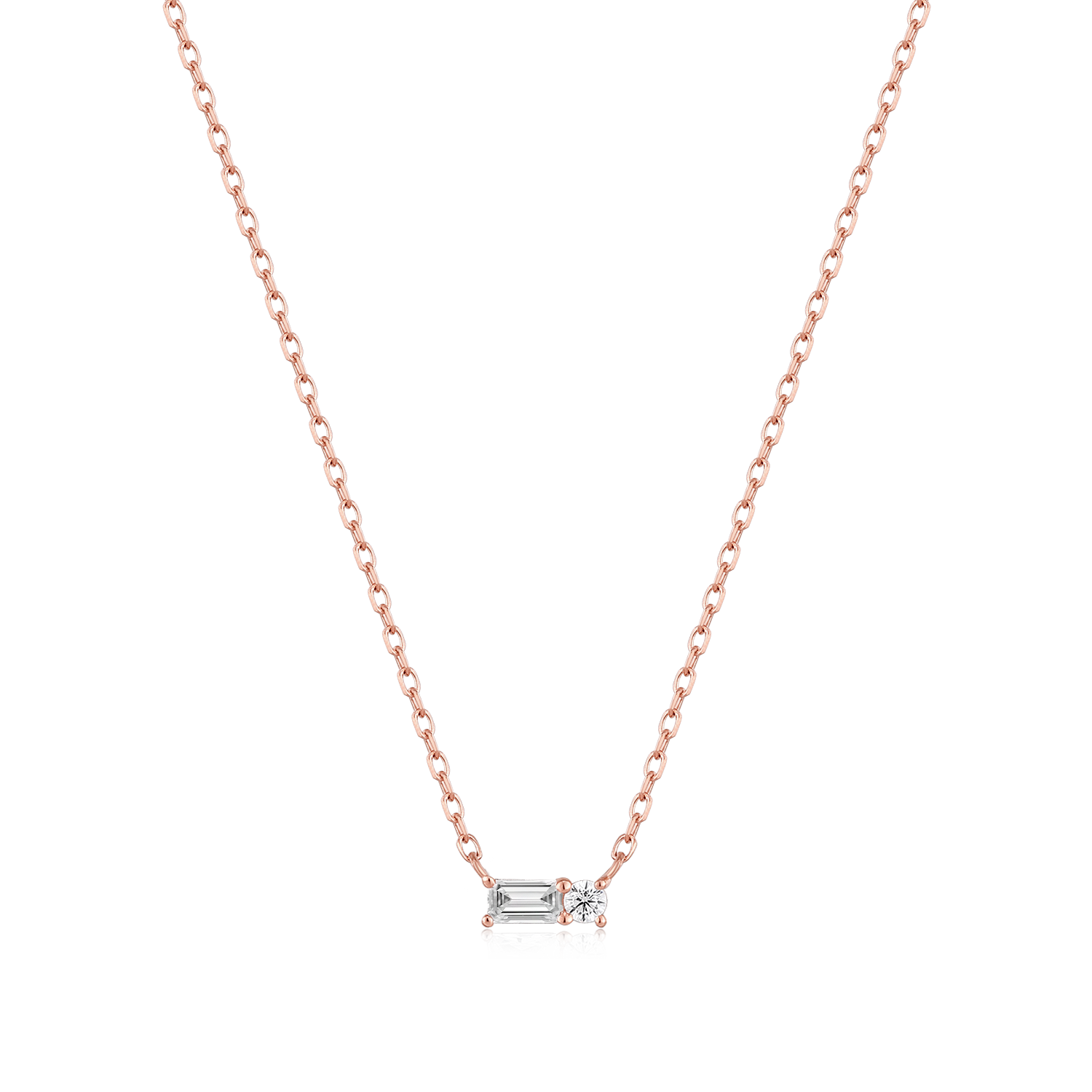 Step up your daily necklace game with our Emerald and Round Diamond Necklace. Perfect for layering with other necklaces, this edgy emerald-cut piece adds a touch of elegance with the classic round diamond. Shine bright and stand out from the crowd!