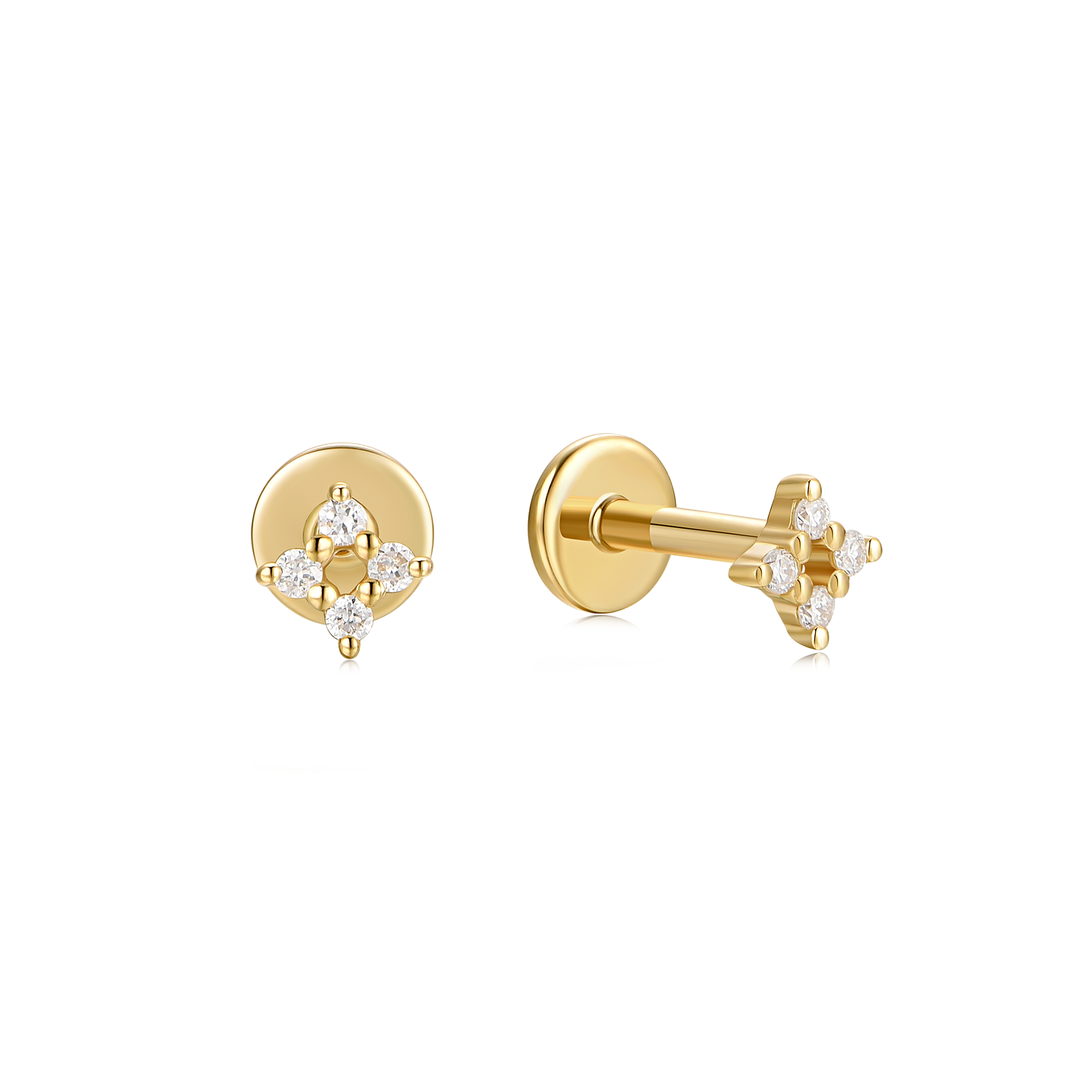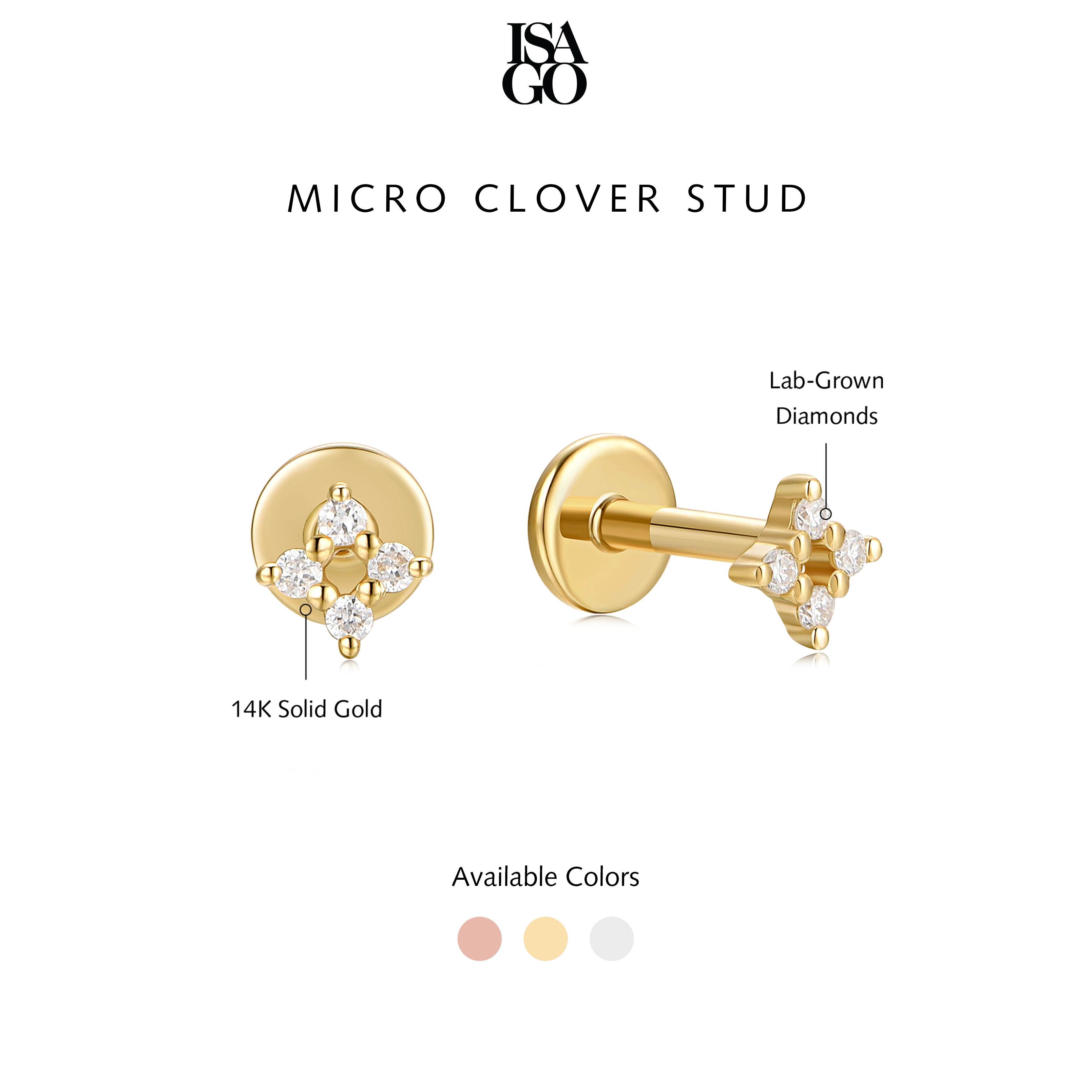 Add a touch of whimsy to any outfit with our Micro Clover Studs. Made from 14K solid gold, these flat-back earrings feature 4 sparkling round lab-grown diamonds. Perfect for adding a pop of sparkle to your look. (Diamonds are a girl's best friend!)