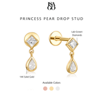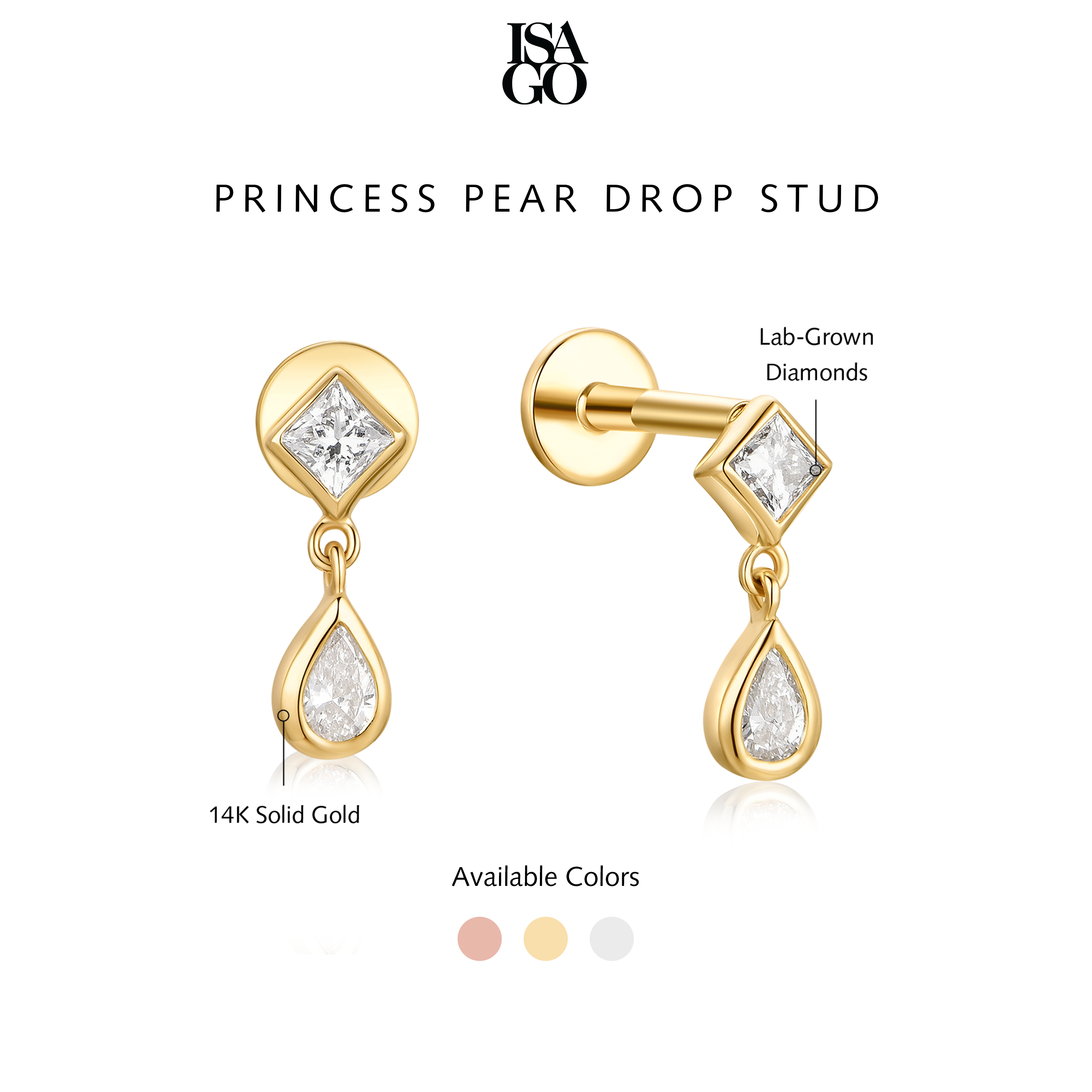 Our Princess Pear Drop Studs will add a touch of glimmer and dynamic glam to your look. The sparkling pear and princess lab-grown diamonds offer a touch of elegance, while the flat-back system ensures comfortable wear.