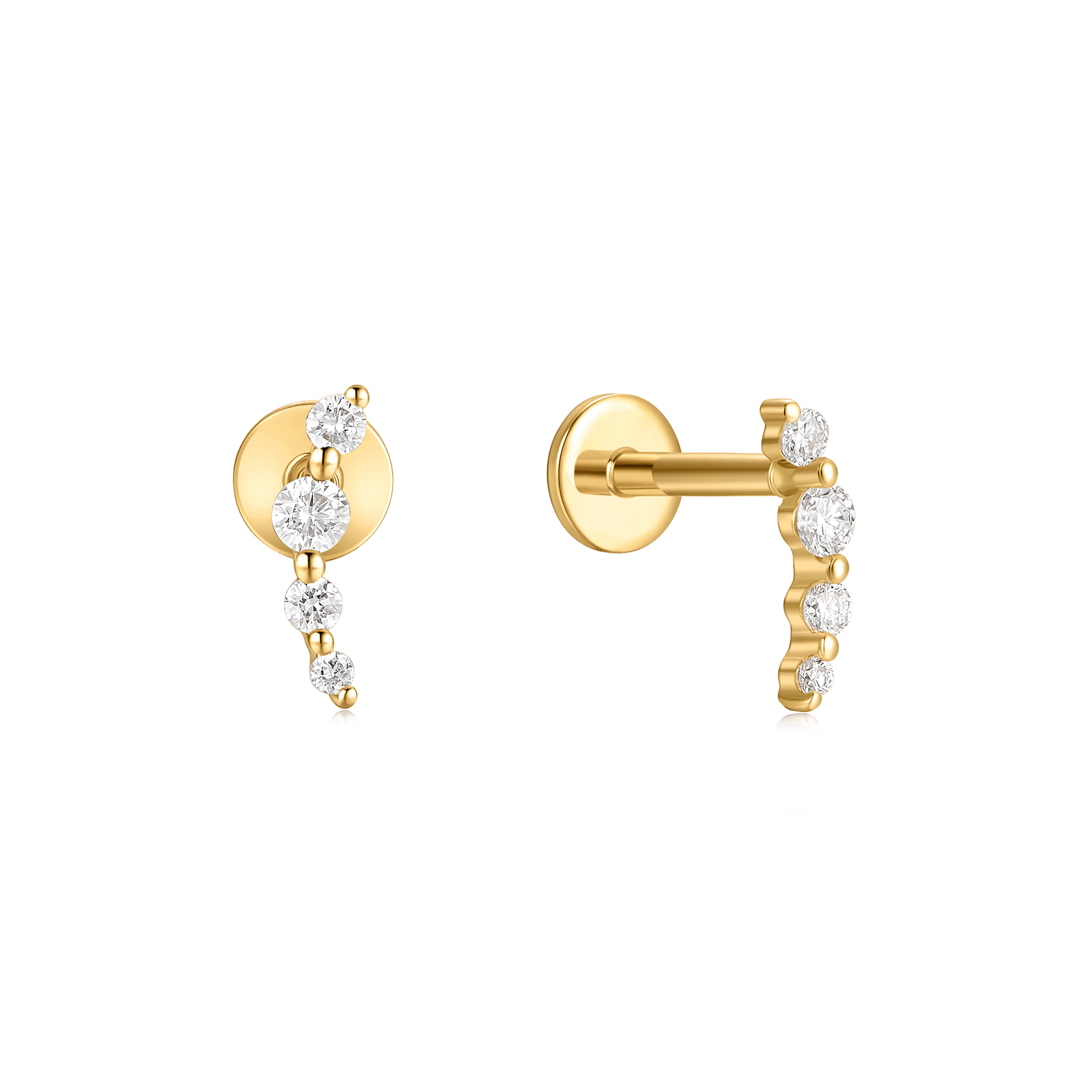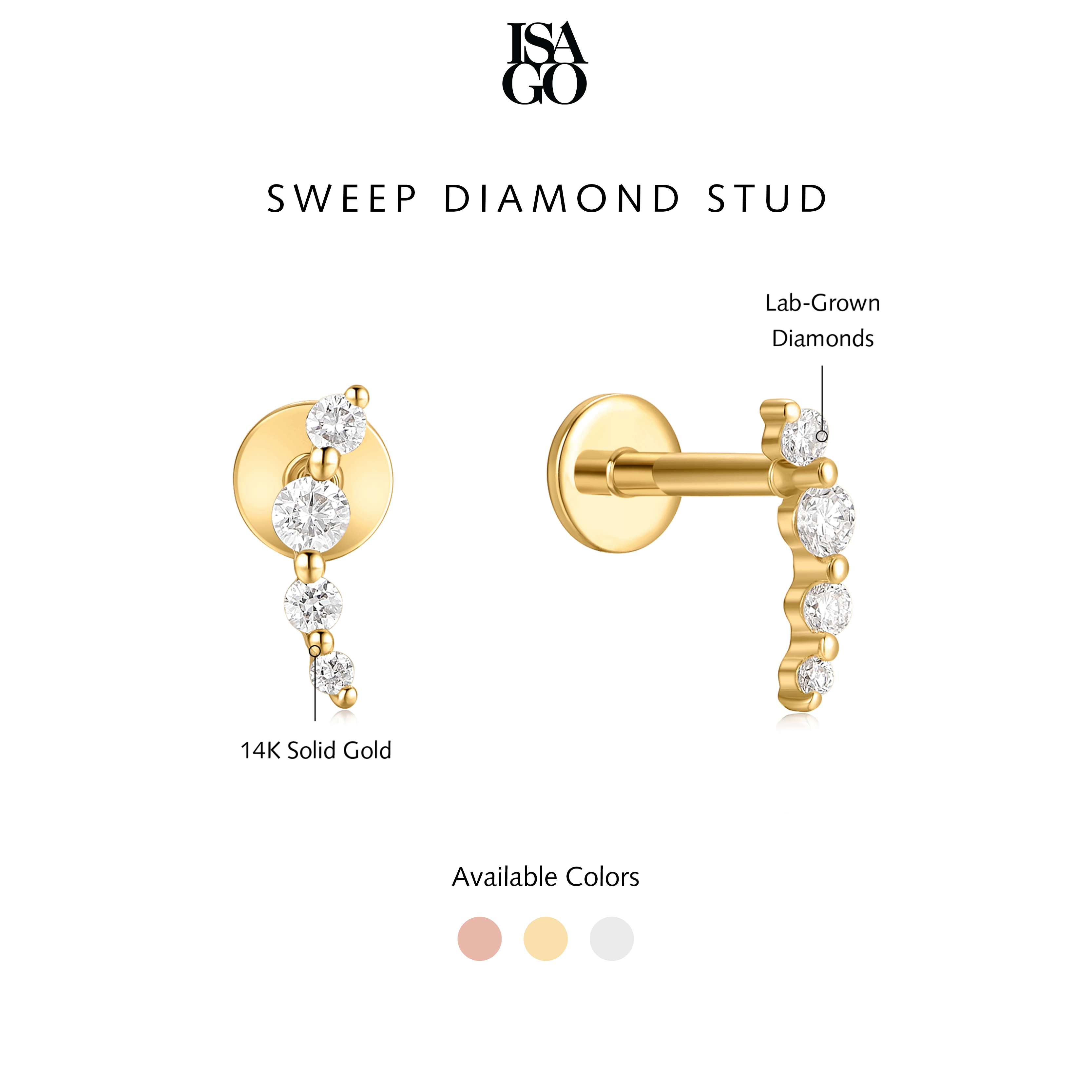 Sparkle and shine with our Sweep Diamond Studs! Crafted from 14K solid gold, these studs feature a flat-back design for comfortable wear. The gradation of round sparkling lab-grown diamonds adds a touch of luxury and elegance.