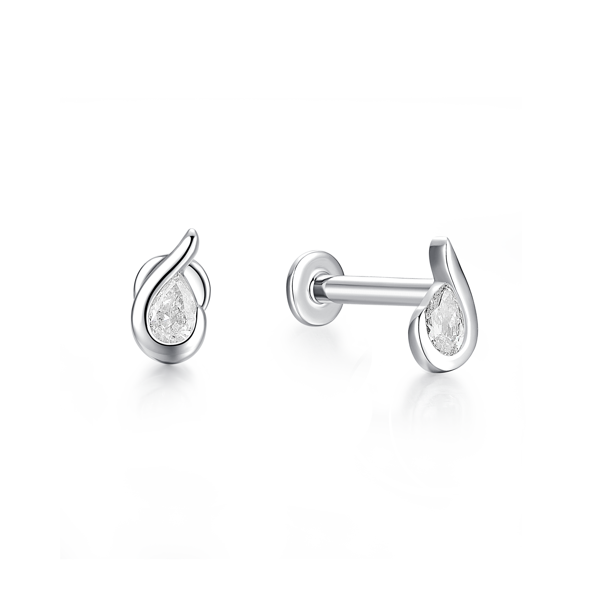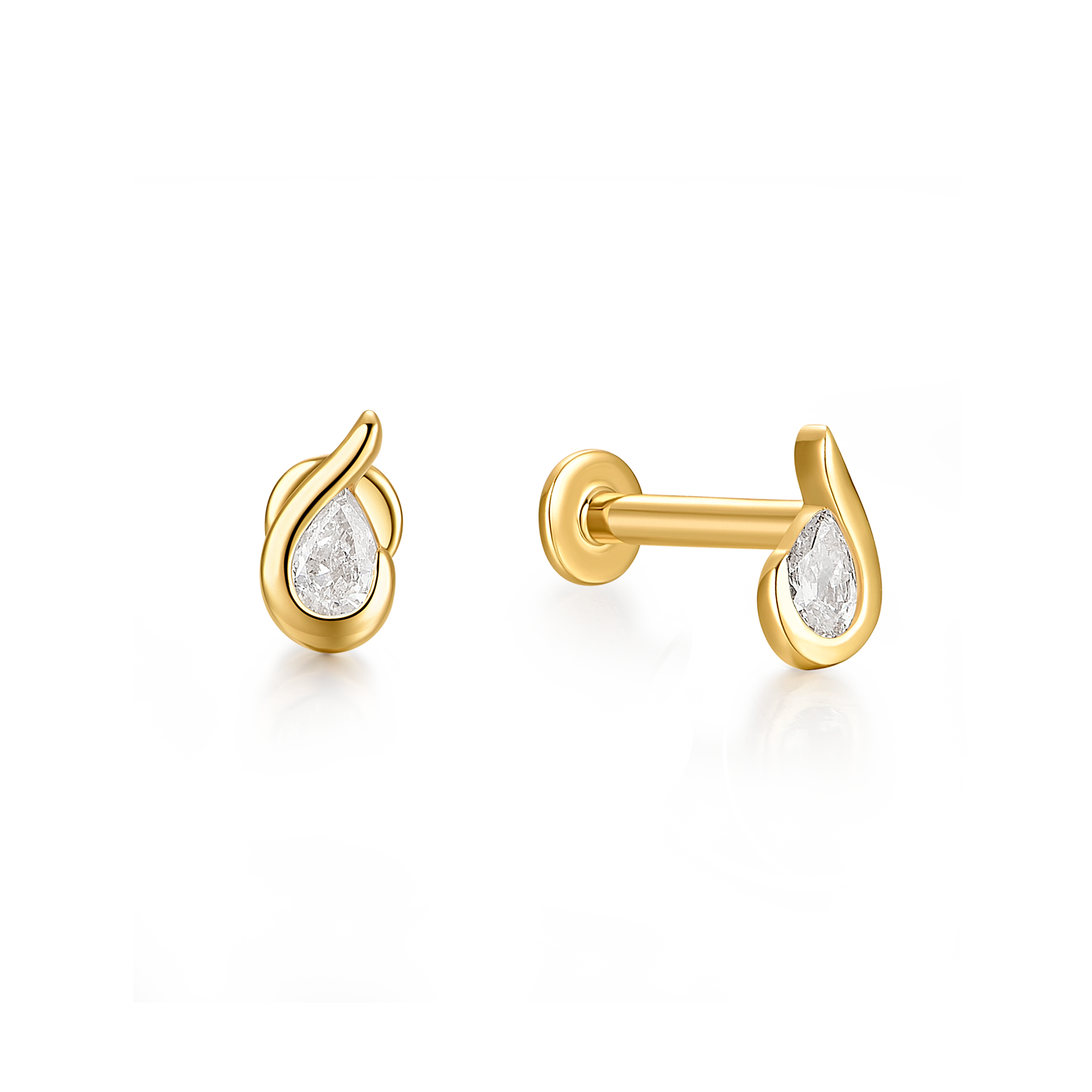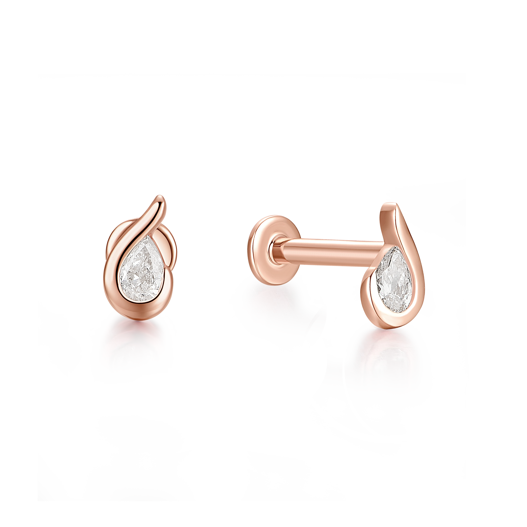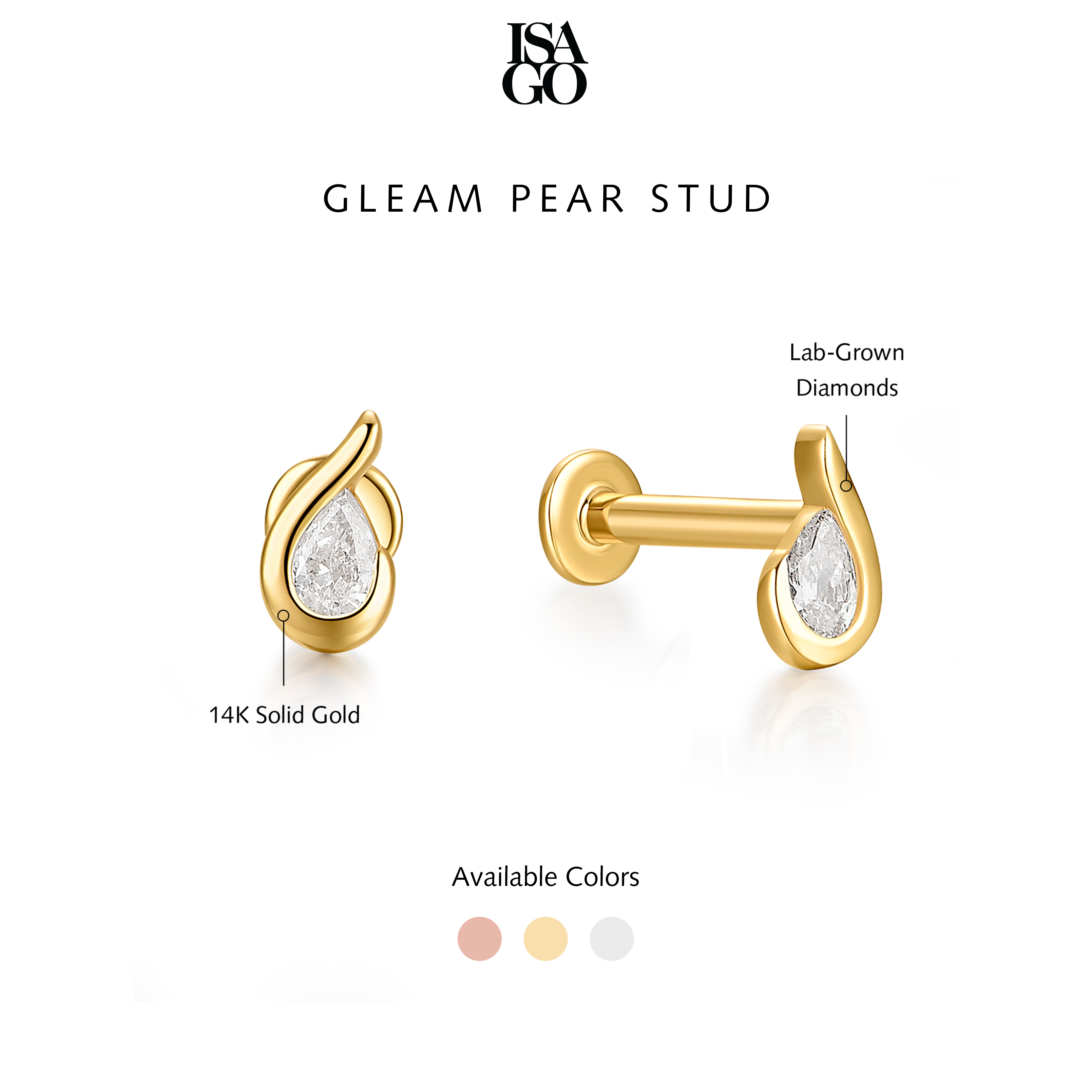 These Gleam Pear Studs feature a unique design, showcasing a pear-cut lab grown diamond. The flat-back design ensures both ease and comfort.