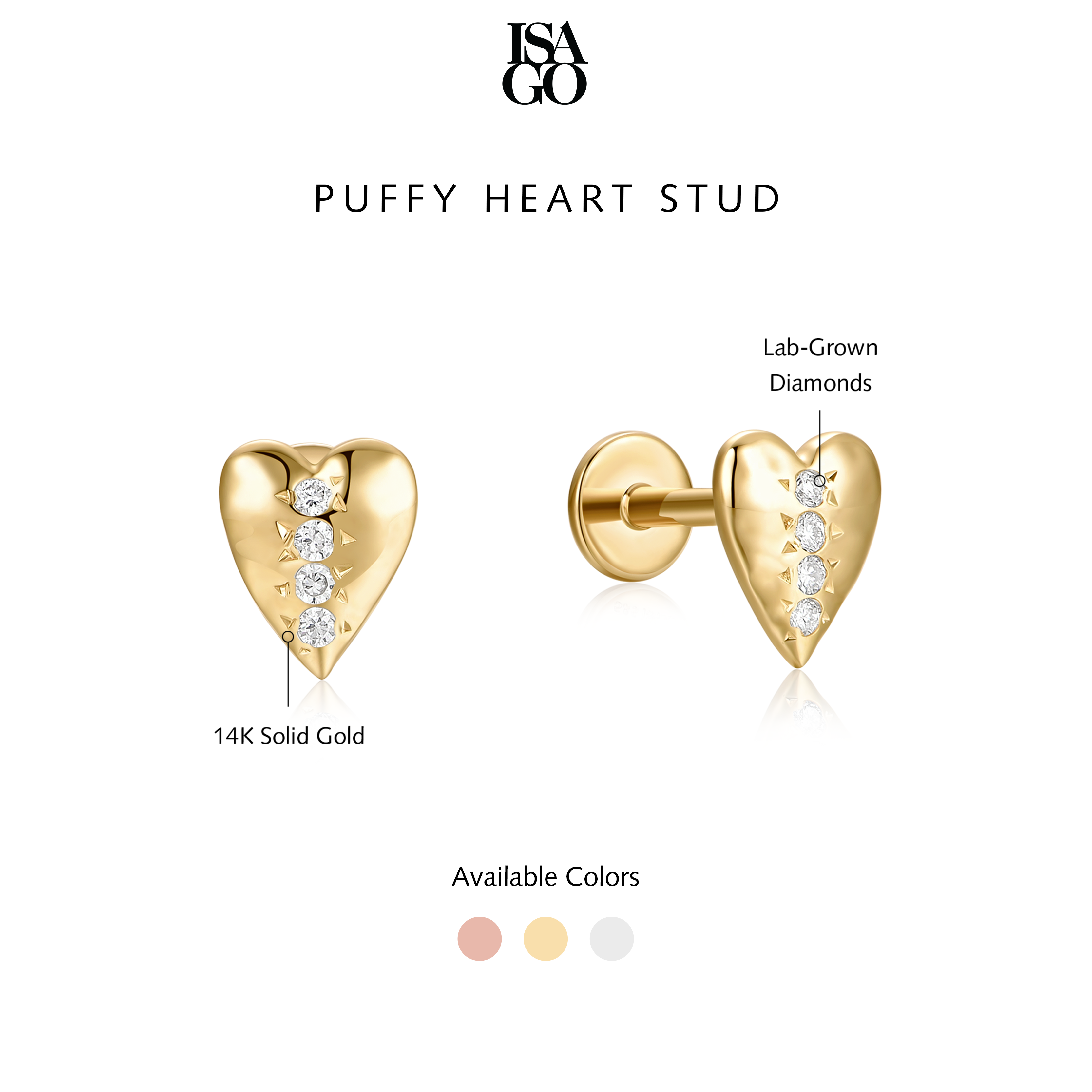 These adorable Puffy Heart Studs will steal your heart with their lab-grown diamonds and convenient flat-back design. Enjoy the sparkle and shine without sacrificing comfort.