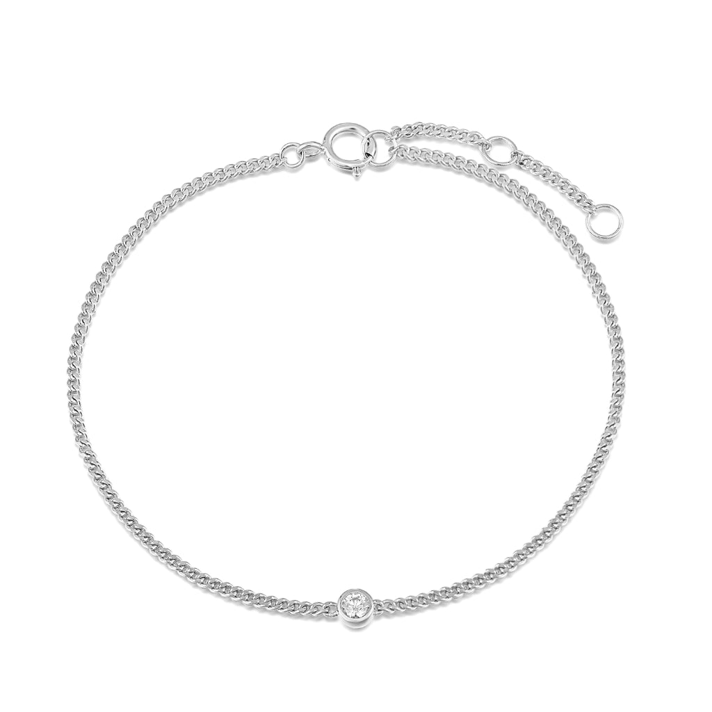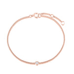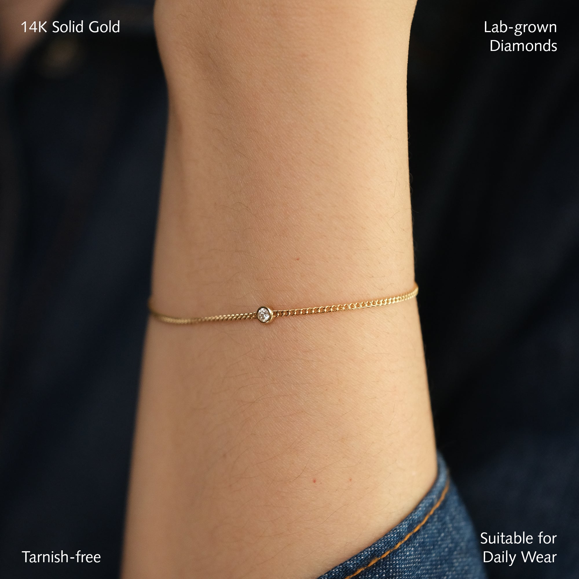 Introducing our Petite Cuban Round Bezel Diamond Bracelet, made with 14K solid gold and featuring an adjustable design. This stunning piece is accented with a single round lab-grown diamond, adding a touch of elegance to any outfit. Upgrade your accessory game with this timeless and versatile bracelet.