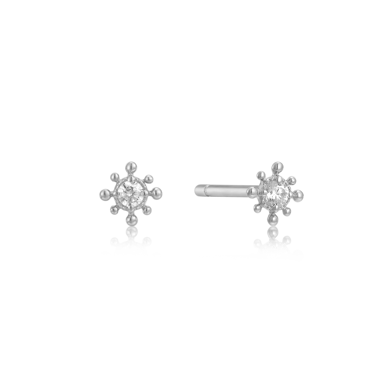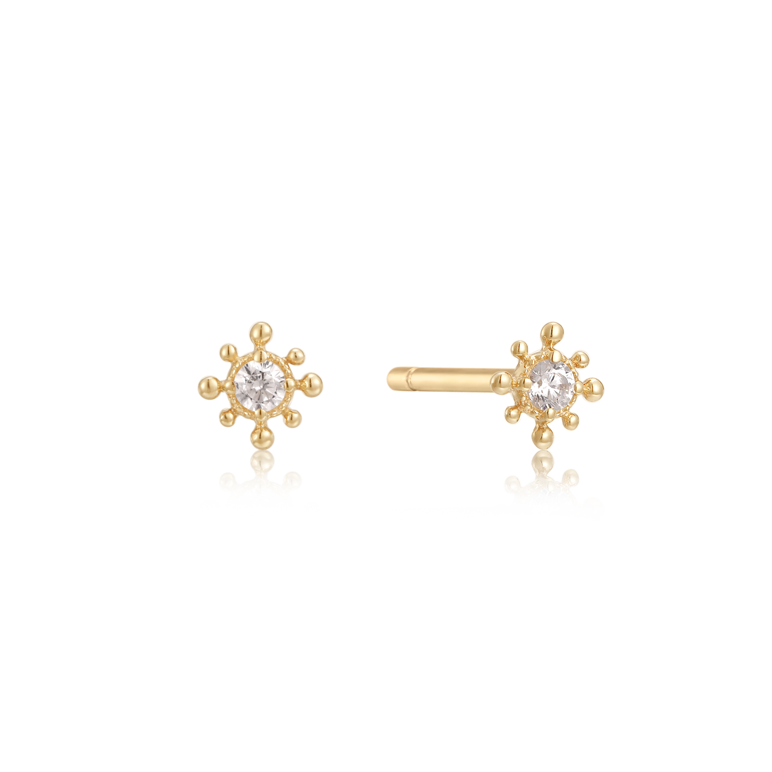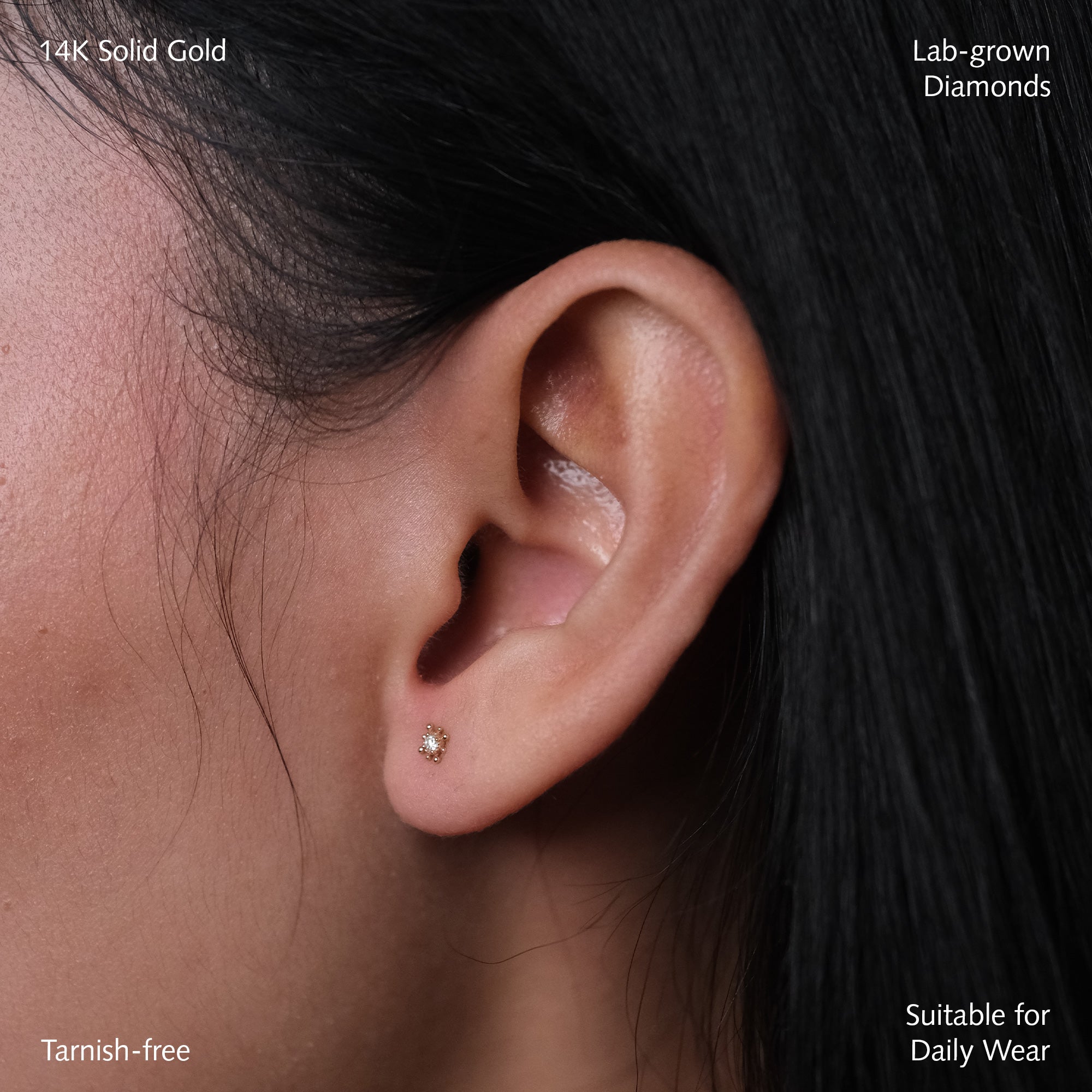 Classic studs with a vintage twist, featuring  round-cut lab-grown diamonds and a modern sunburst milgrain setting.