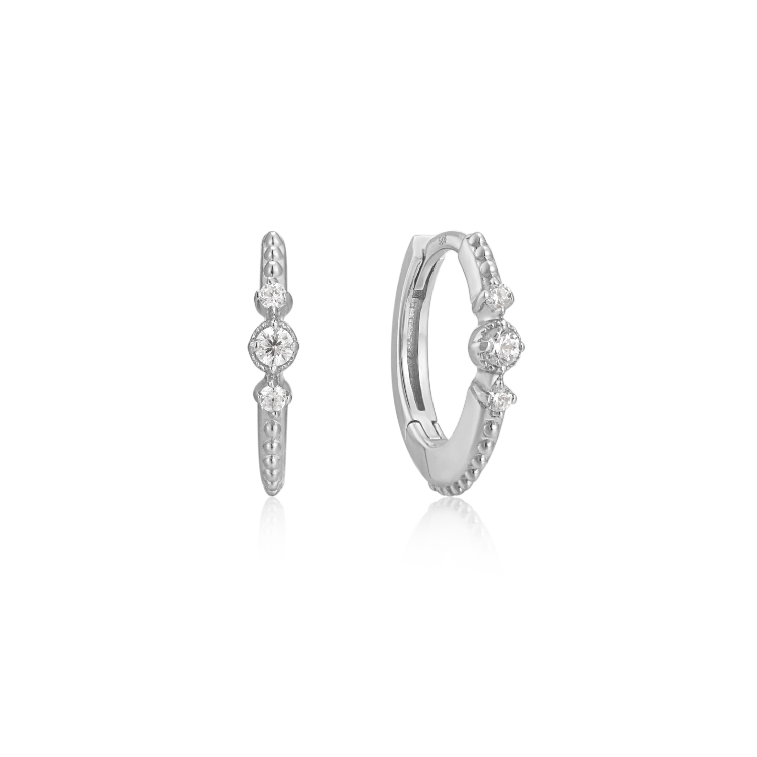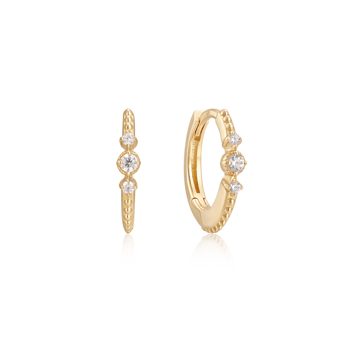 Classic huggies with a vintage twist, featuring three round-cut lab-grown diamonds and a modern milgrain setting.