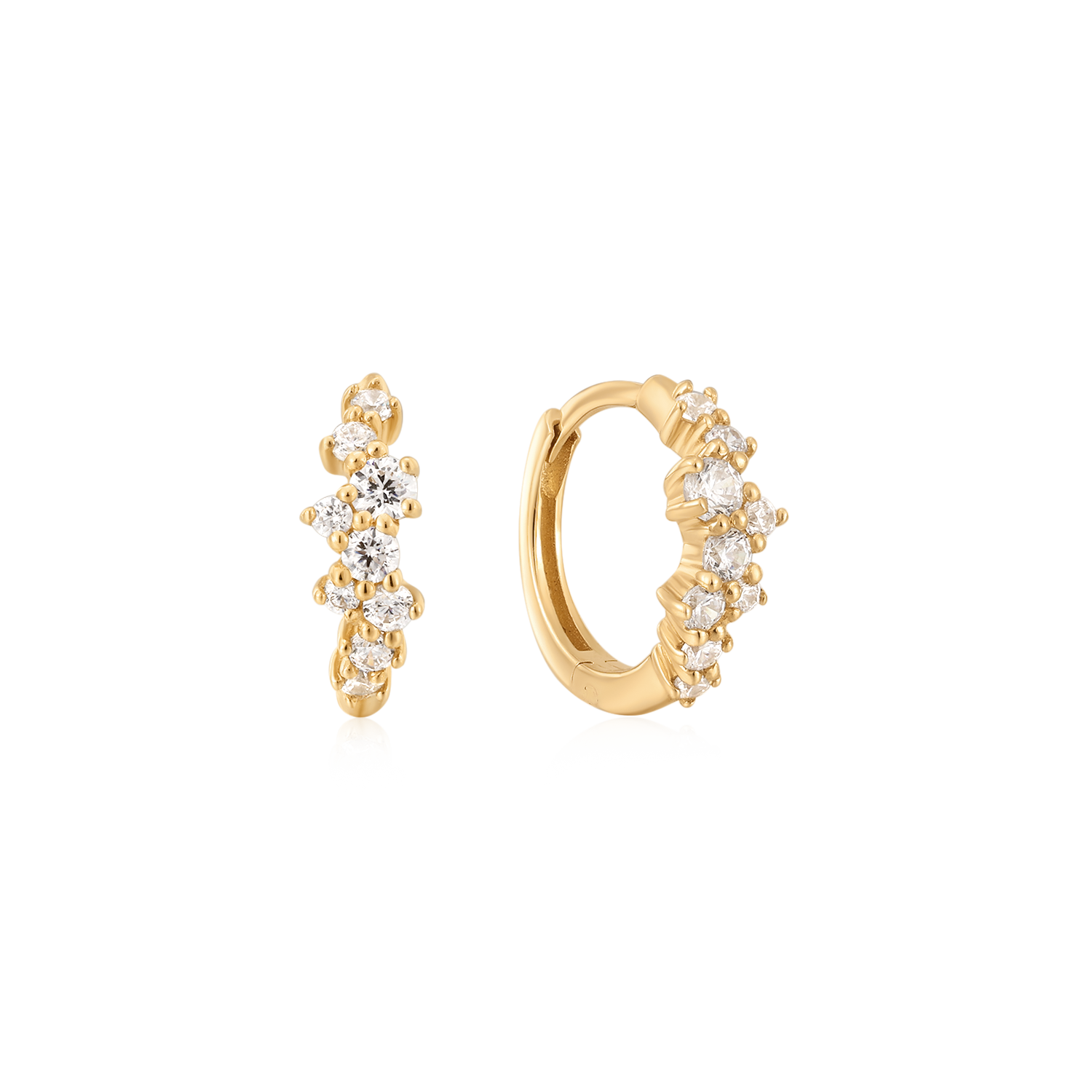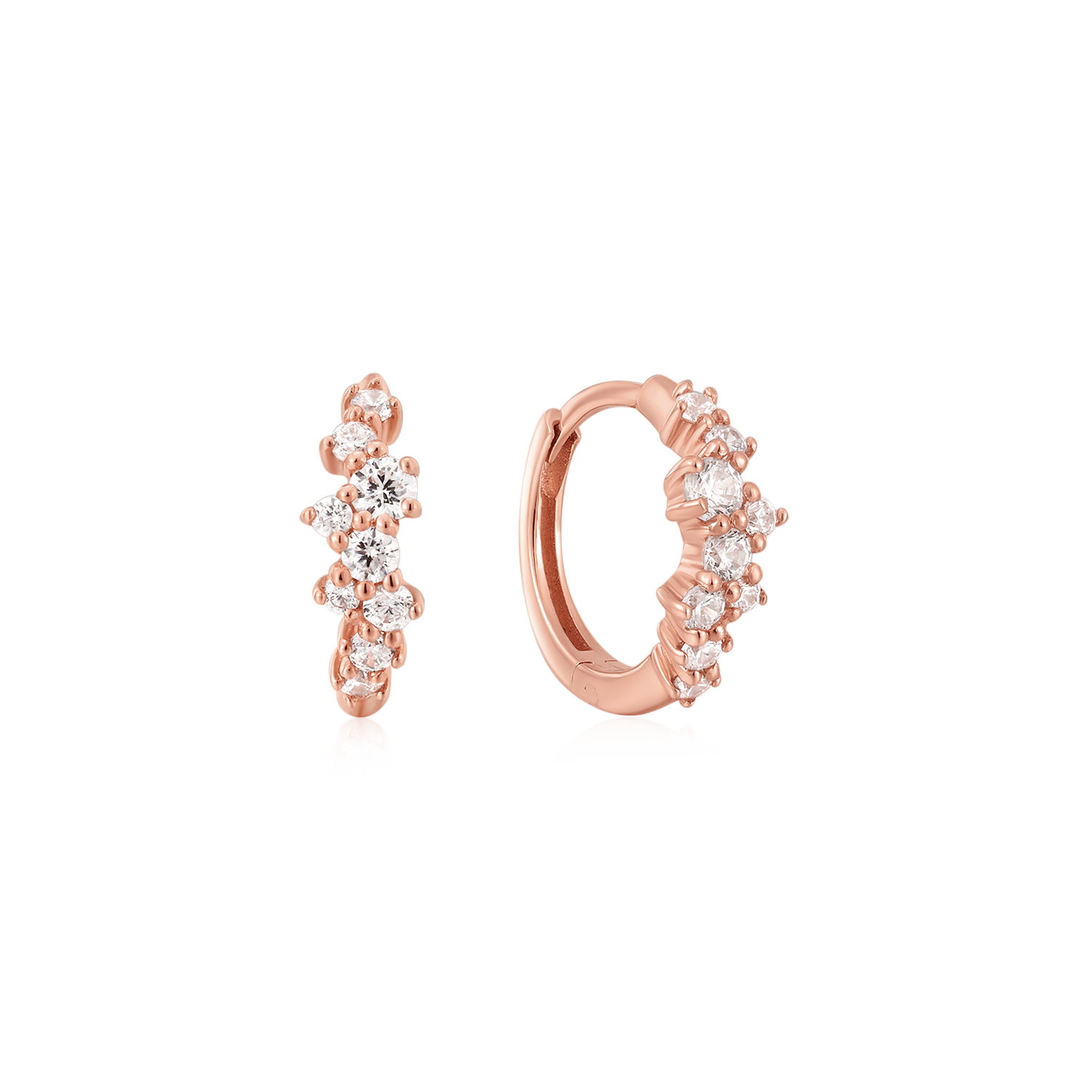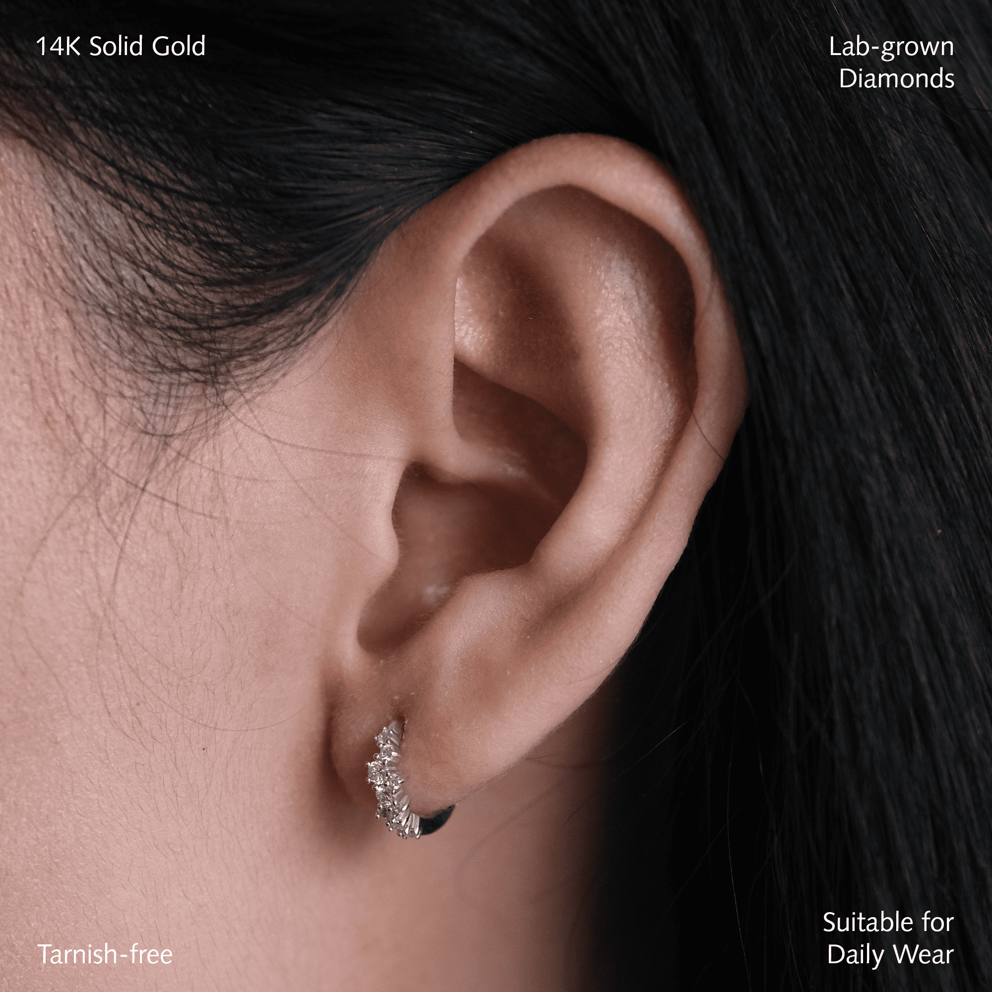 Sparkling round lab-grown diamonds create a unique organic huggies silhouette, meant to be treasured for years to come. Crafted with a 14k solid gold setting, each diamond is held securely in place for a timeless look.