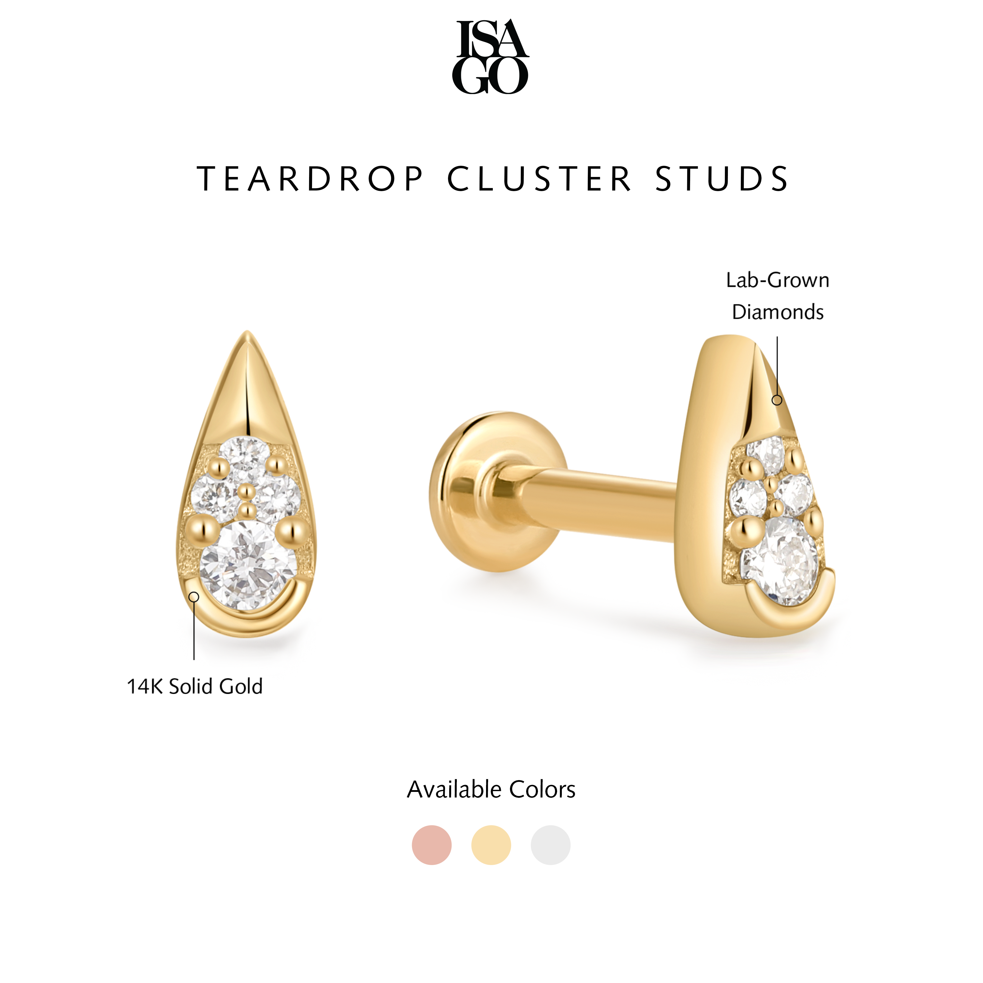 Introducing our Teardrop Cluster Studs - the perfect combination of sparkle and comfort. With pear-cut lab grown diamonds and a flat-back design, you can shine bright in style. Get ready for some serious sparkle with these unique earrings.