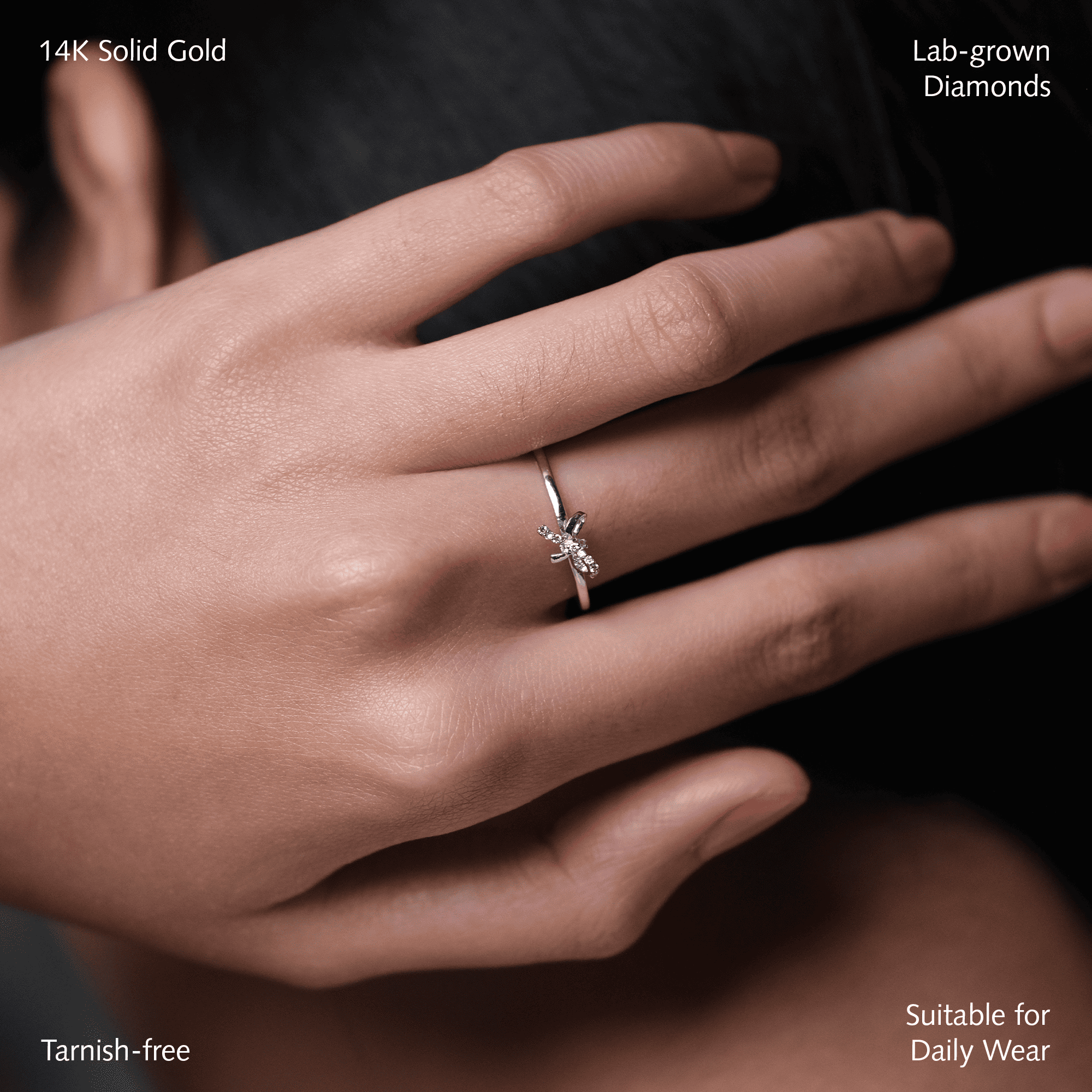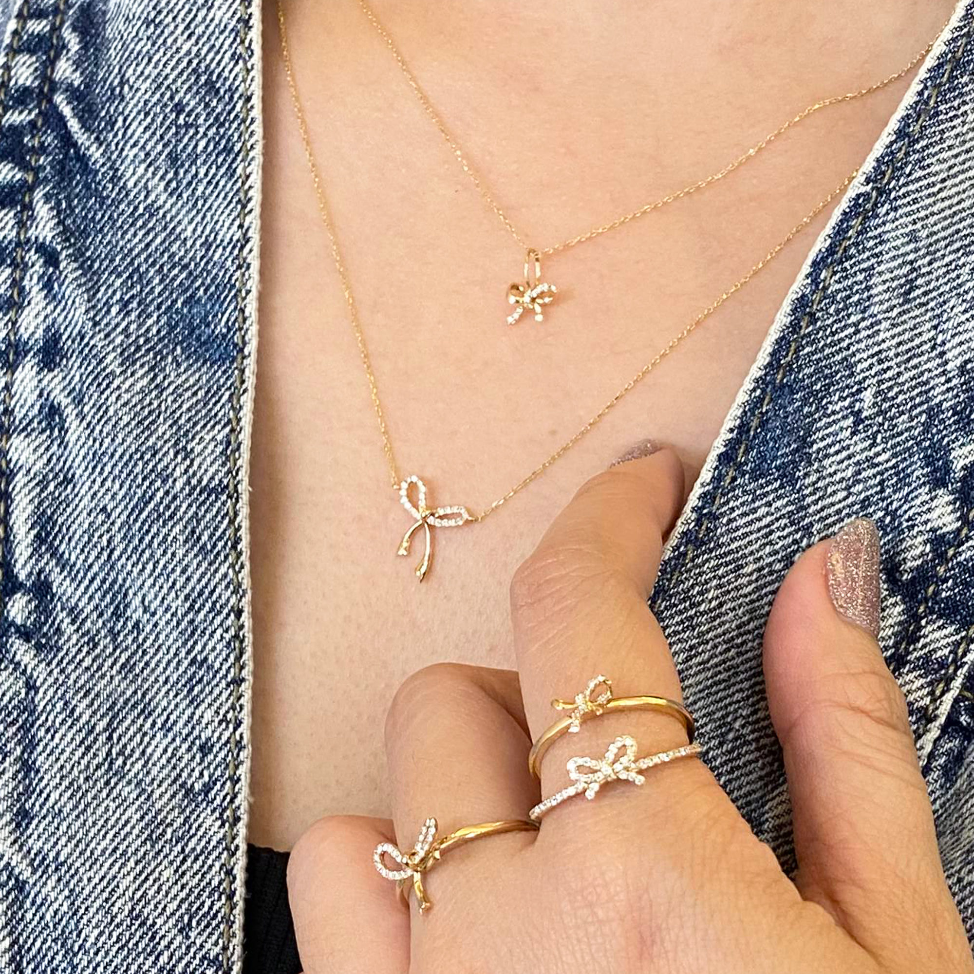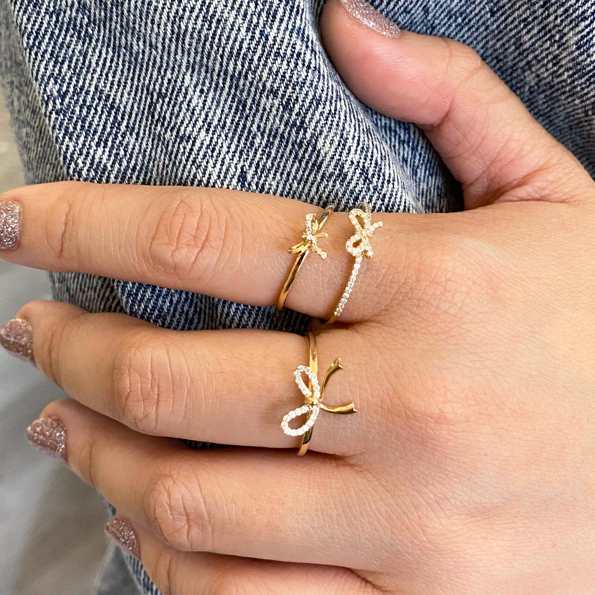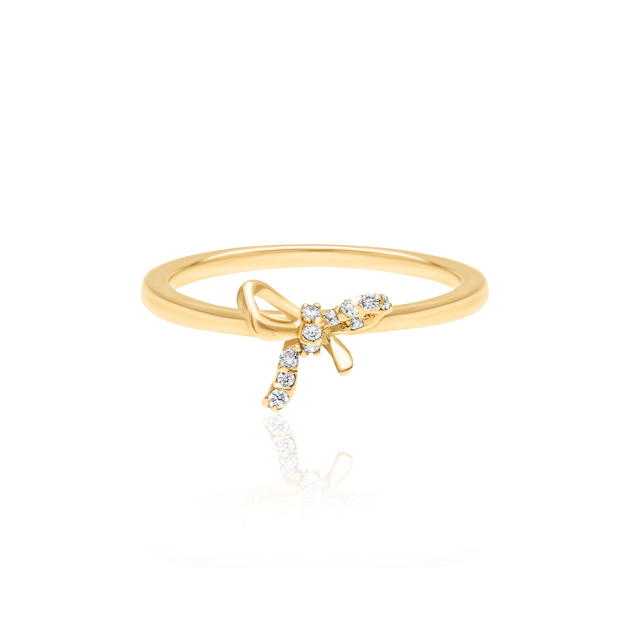 Get some feminine touch back to your ring stack with this adorable piece. This Mini Ribbon Ring are made with 14k recycled gold and colorless lab grown diamonds.