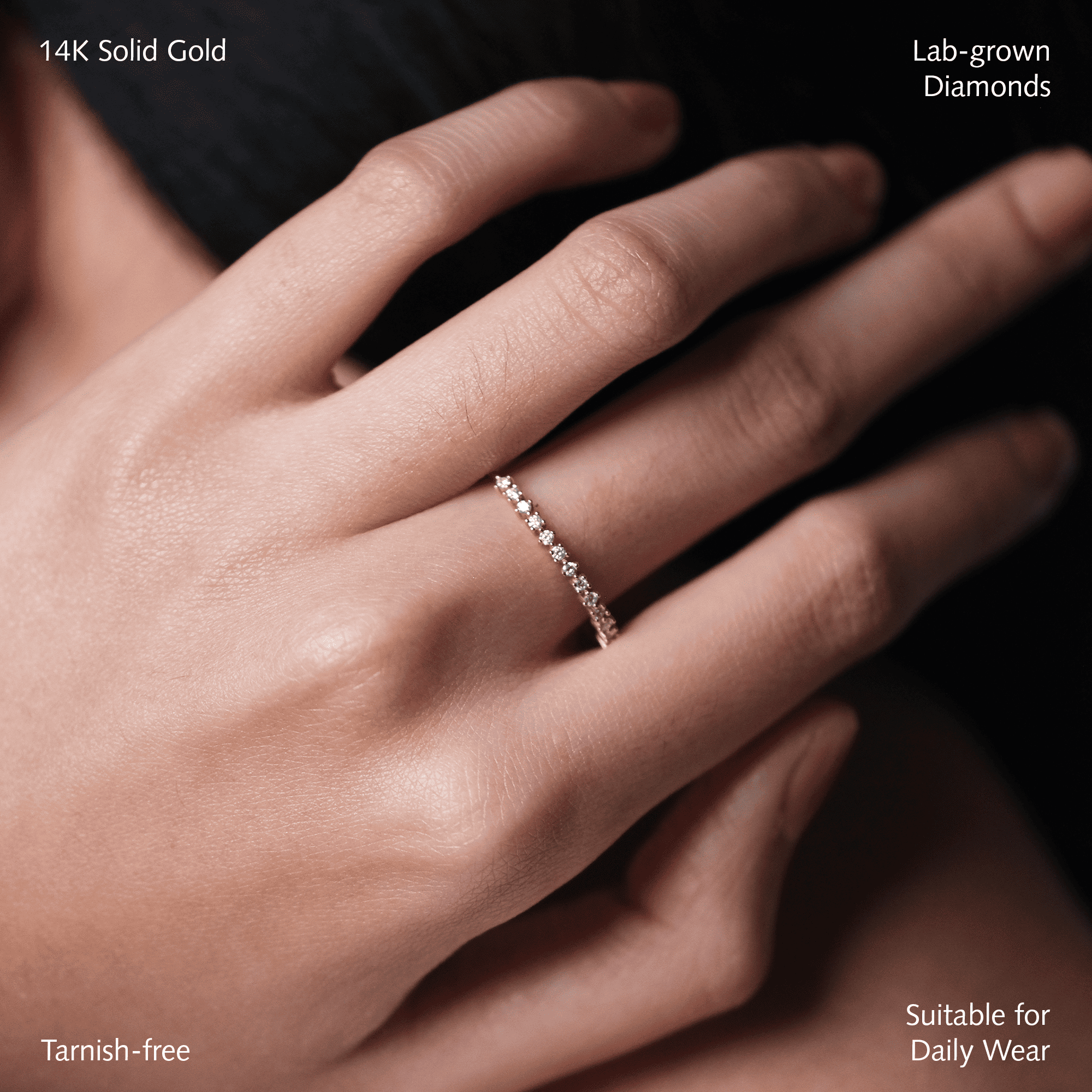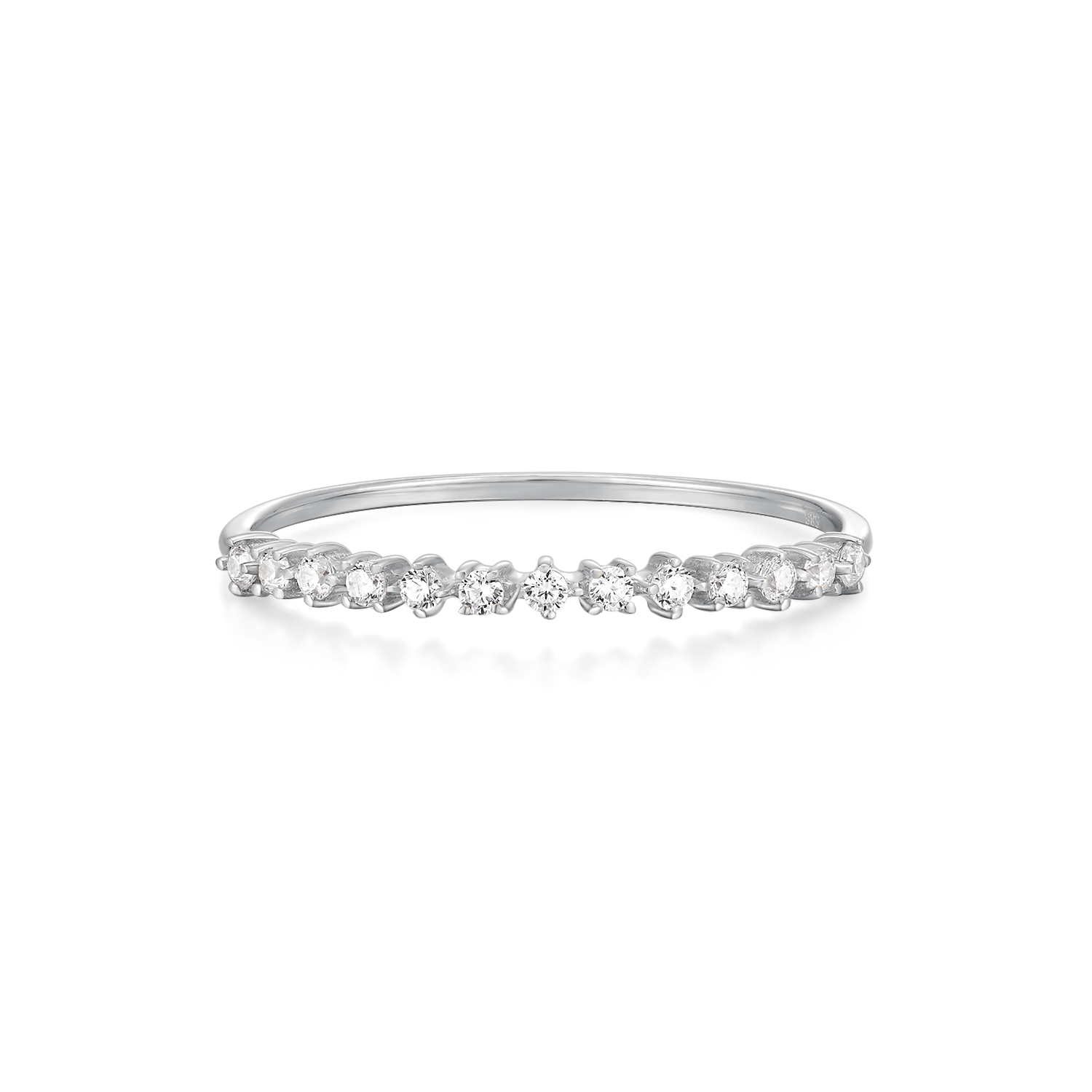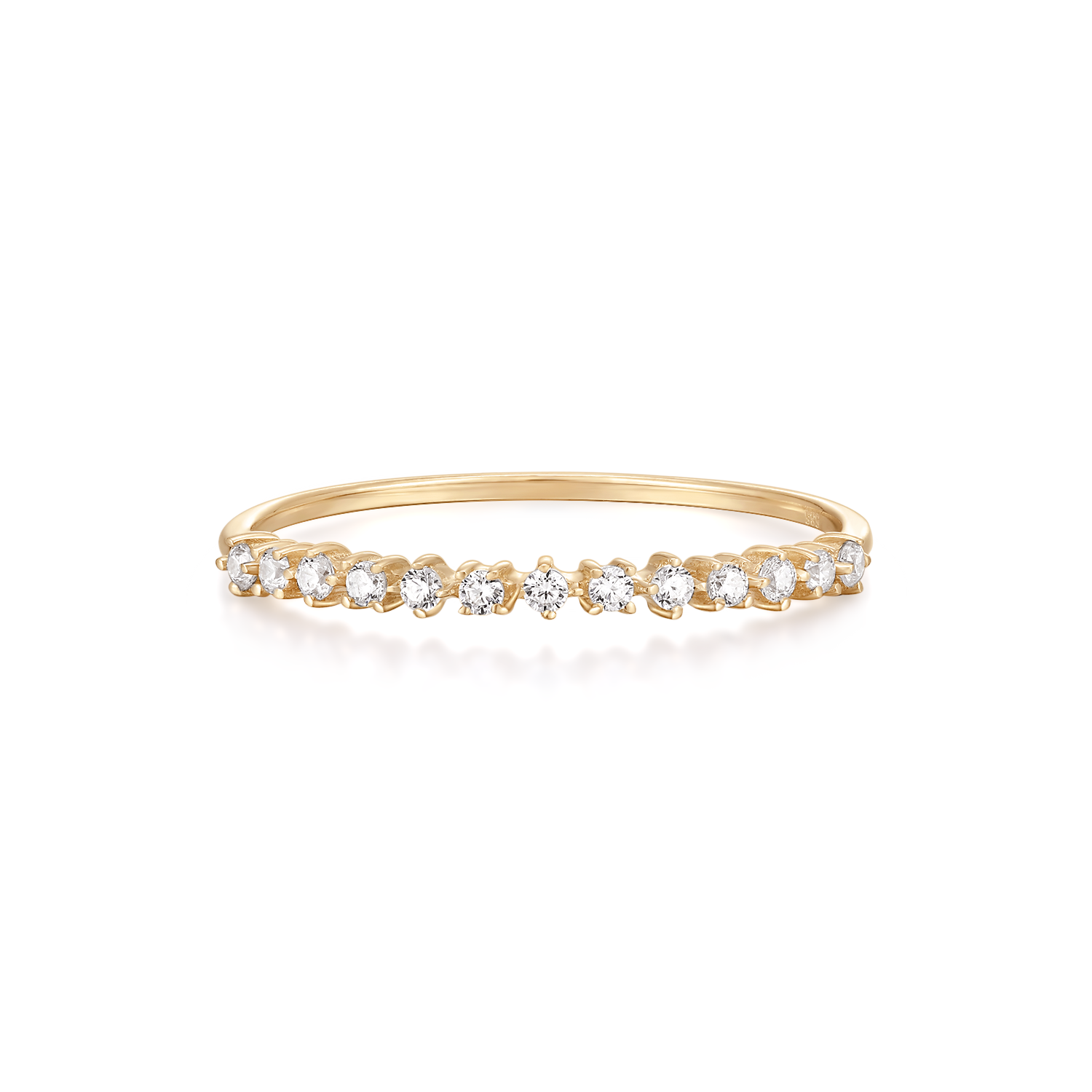 Add a unique touch to your classic diamond band with this slim and sleek design featuring alternating prongs, a dainty twist indeed!
