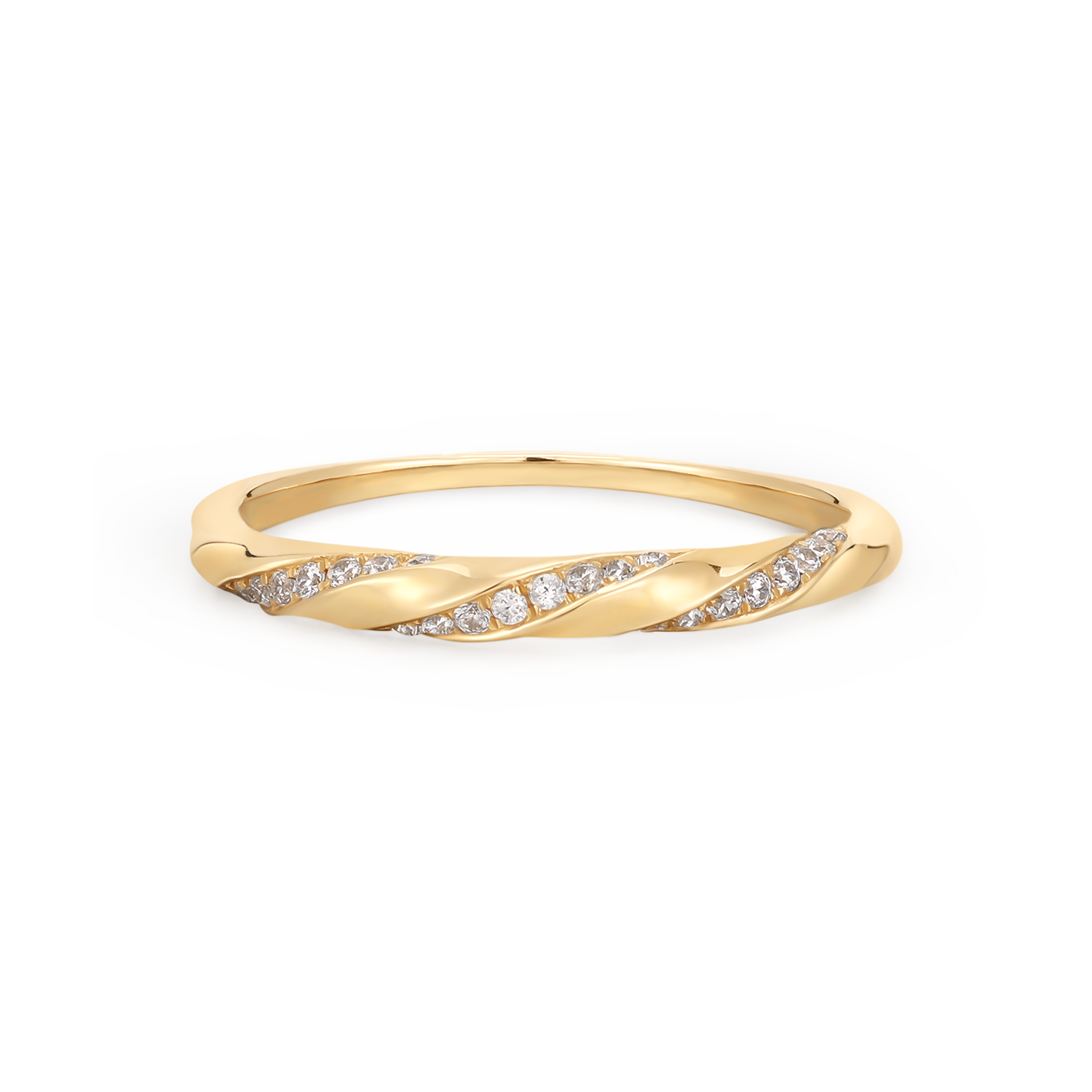Unleash your inner sparkle with this 14k gold ring featuring a unique twist design paired with our lab-grown diamonds.