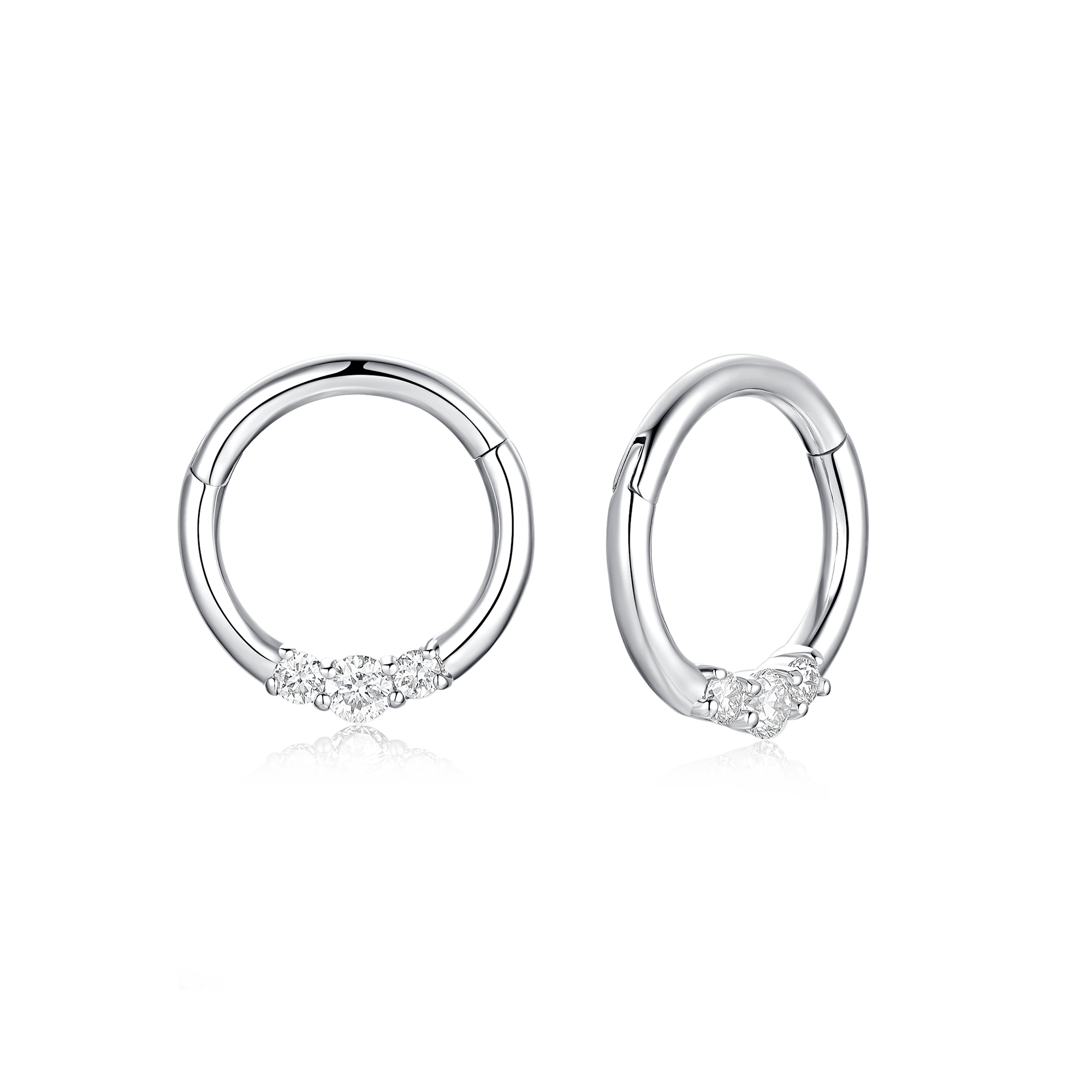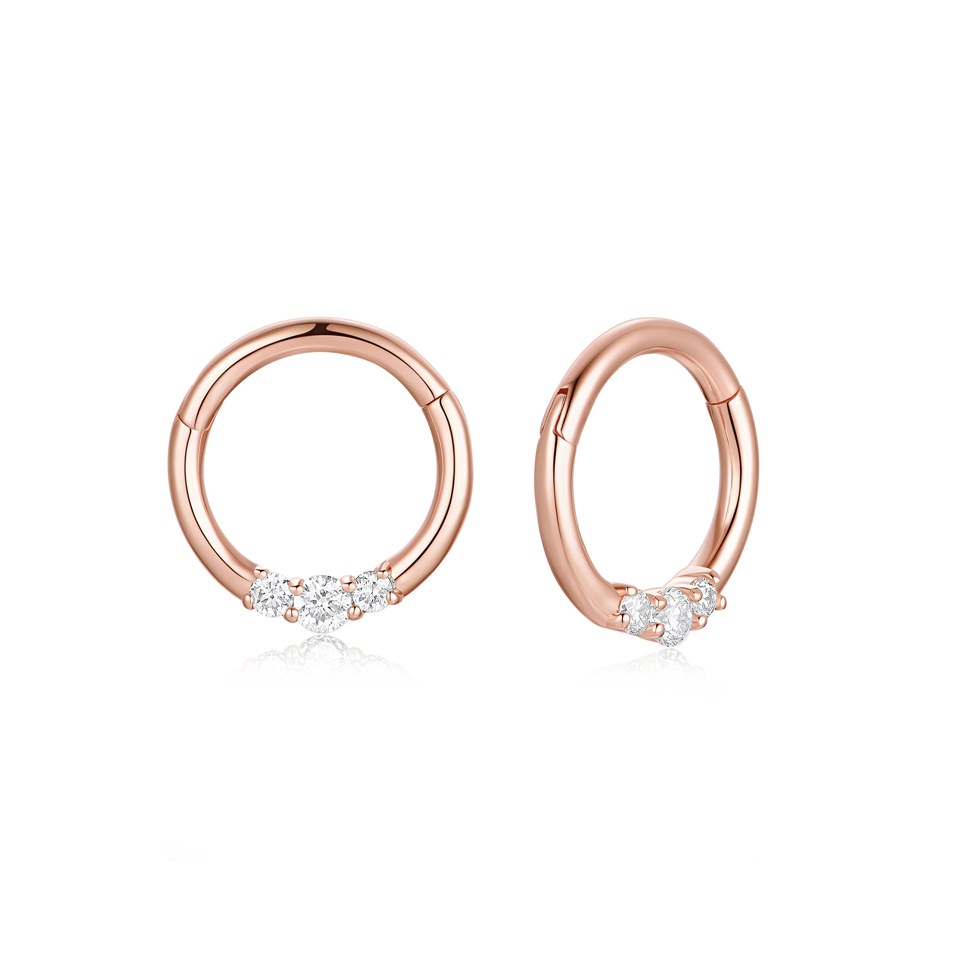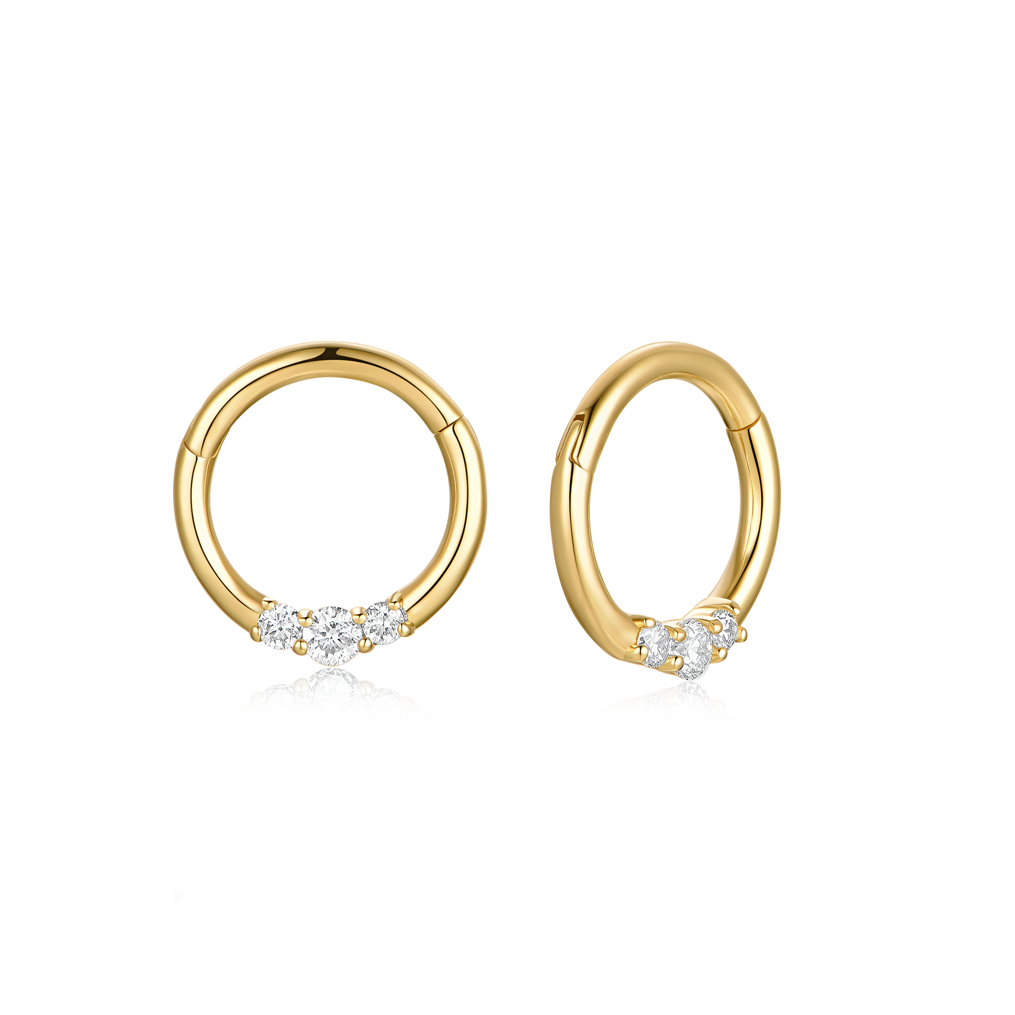 Sparkle and shine with these clicker solid 14K huggies featuring triple round lab-grown diamonds. Perfect for daily wear and ideal for daith piercings.