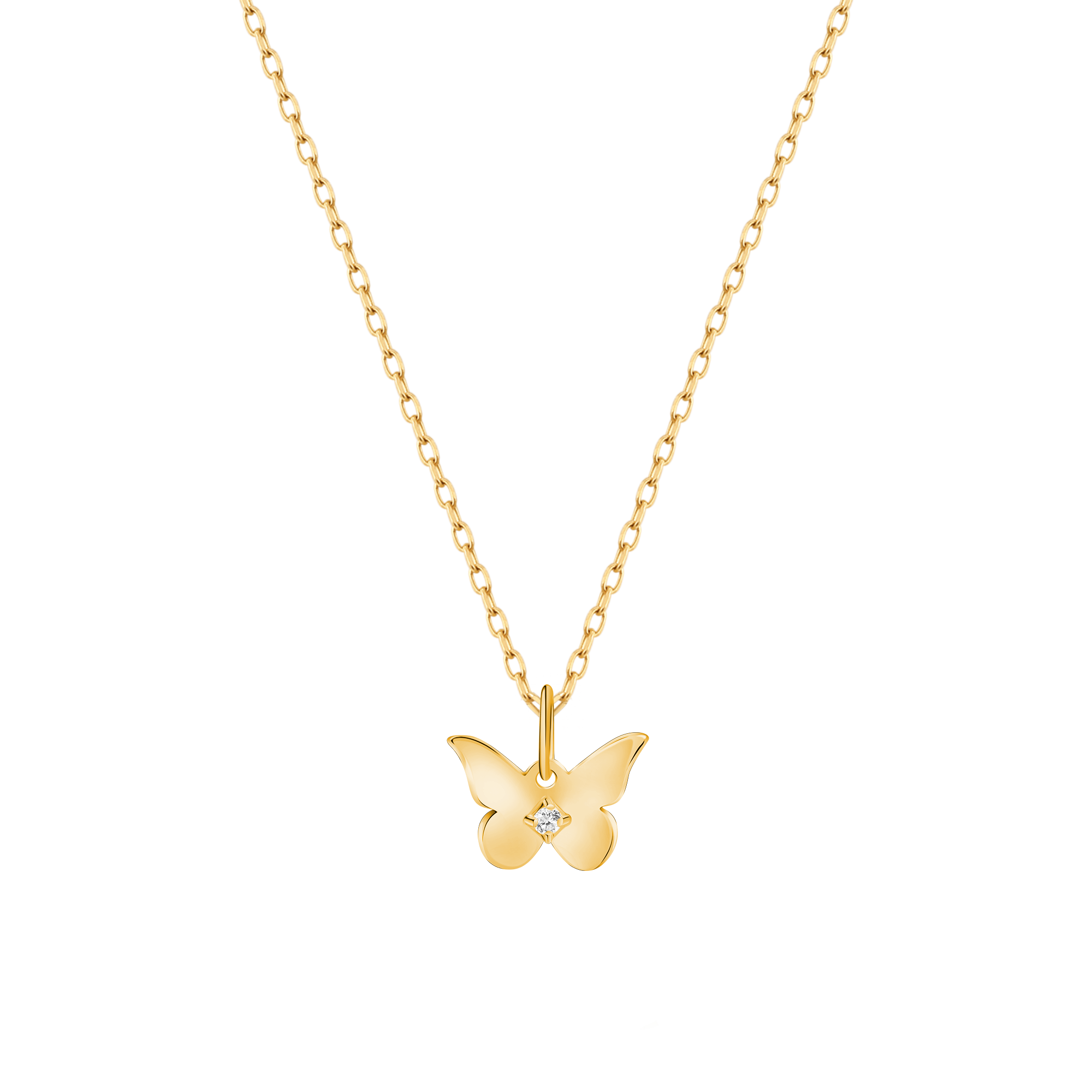 Add a touch of whimsy to your jewelry collection with our Papillon 14K solid gold pendant, featuring sparkling lab-grown diamonds. Its playful design is perfect for pairing with our chain necklace or slipping into our Link Bracelet. Wear it solo for a hint of elegance or stack a few for a bold, personalized look. This versatile piece is all about making your style shine!