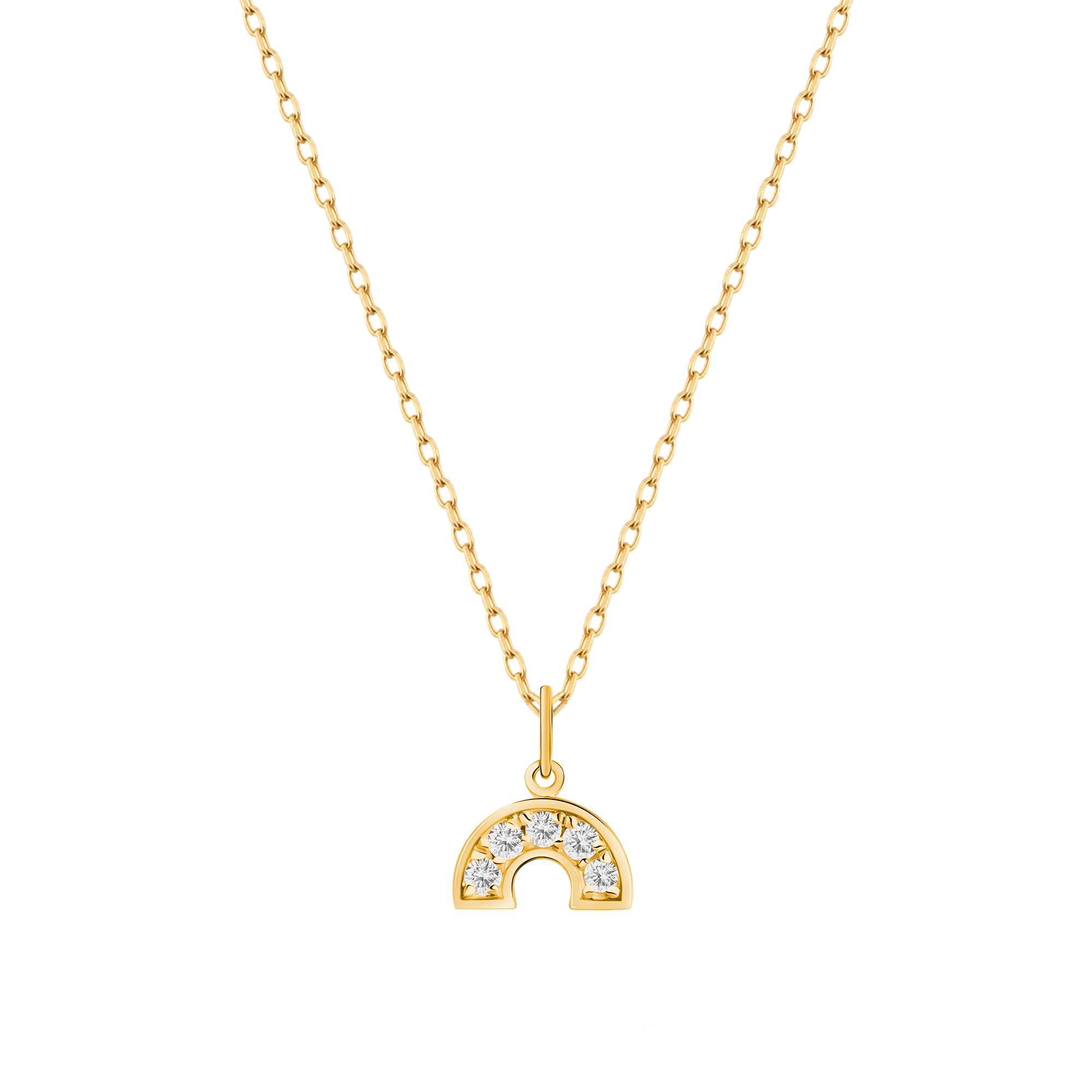 Add a touch of whimsy to your jewelry collection with our Rainbow Arch 14K solid gold pendant, featuring sparkling lab-grown diamonds. Its playful design is perfect for pairing with our chain necklace or slipping into our Link Bracelet. Wear it solo for a hint of elegance or stack a few for a bold, personalized look. This versatile piece is all about making your style shine!