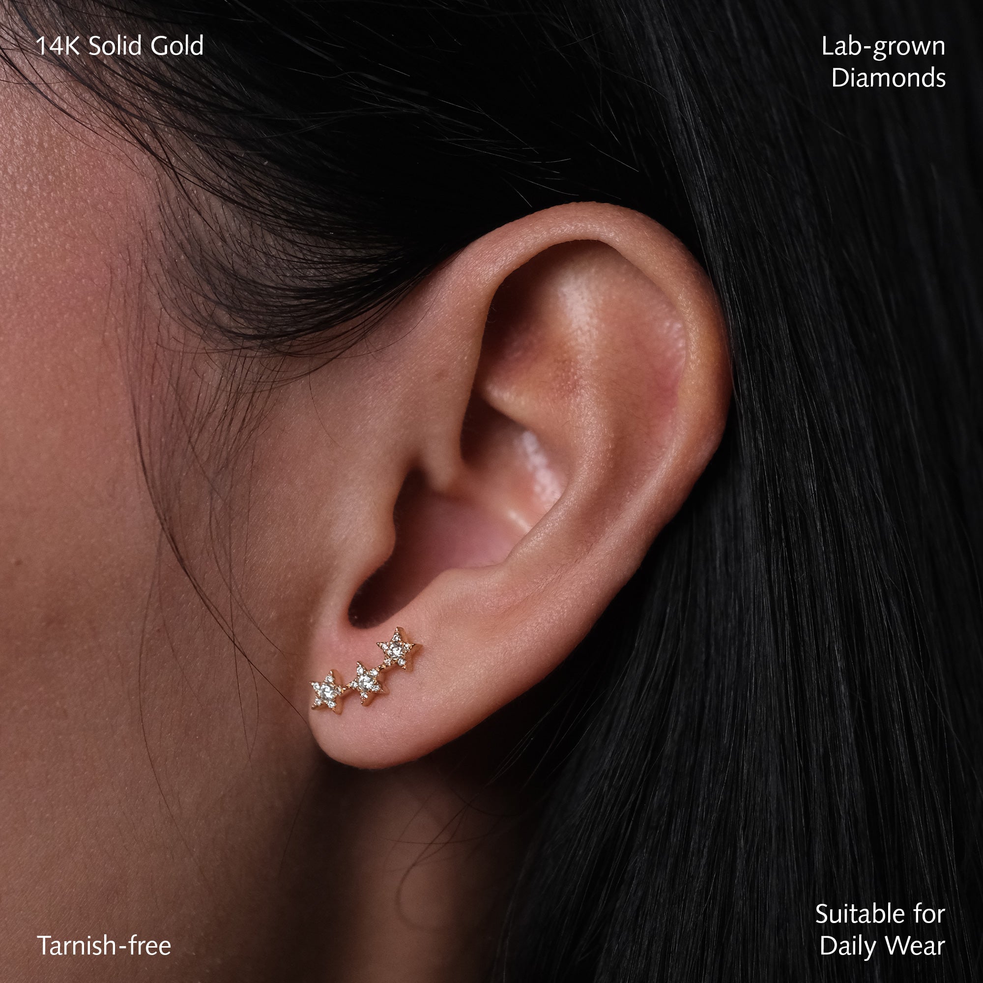 Sparkling lab-grown diamonds in the shape of stars take center stage in this one-of-a-kind earcrawlers. With a dreamy ethereal feel, this piece is sure to turn heads.