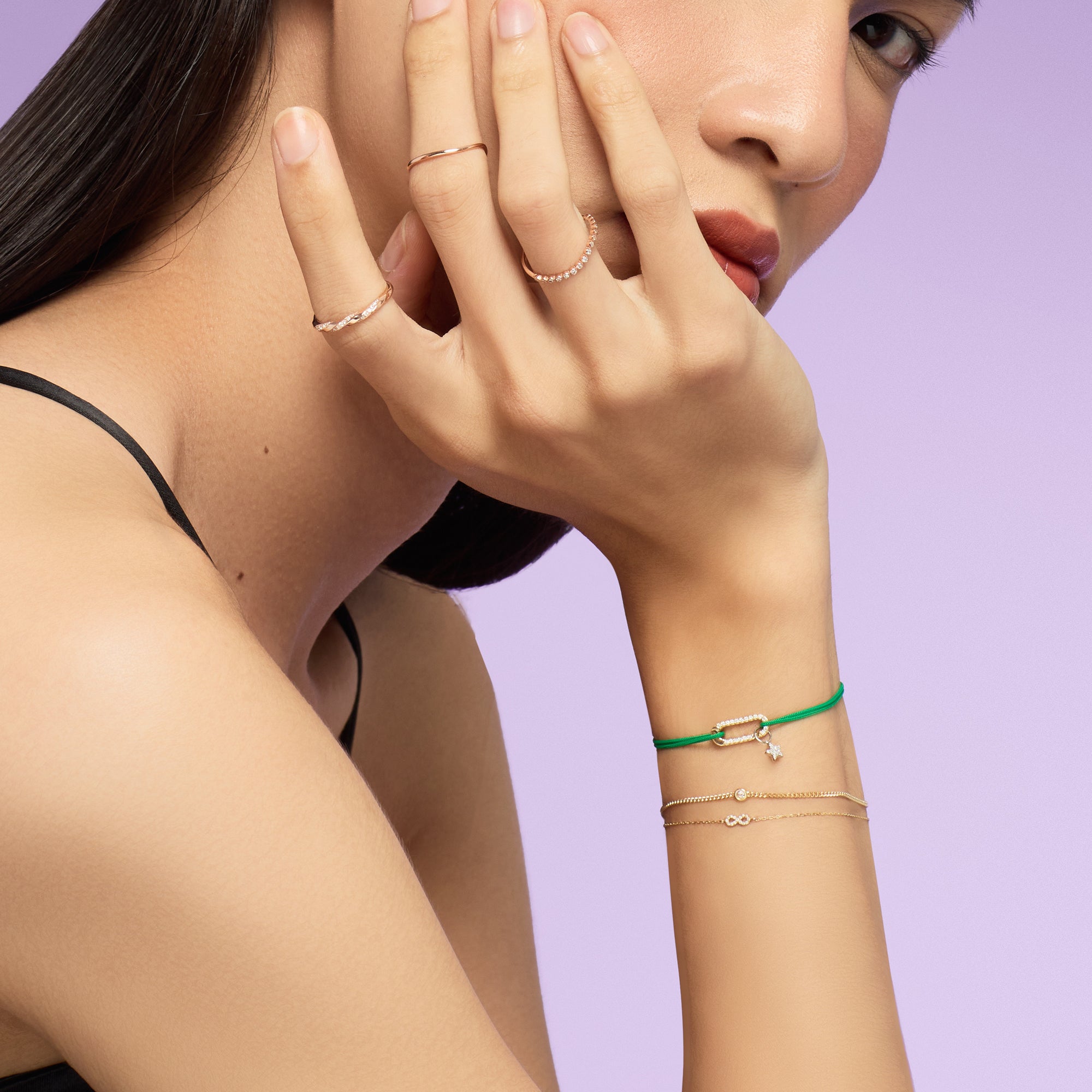 This Infinity Diamond Bracelet is the perfect accessory to match with your loved ones. Made with 14K gold and lab-grown diamonds, this bracelet is perfect for special occasions or everyday wear, this bracelet is sure to be cherished by you and your loved ones.