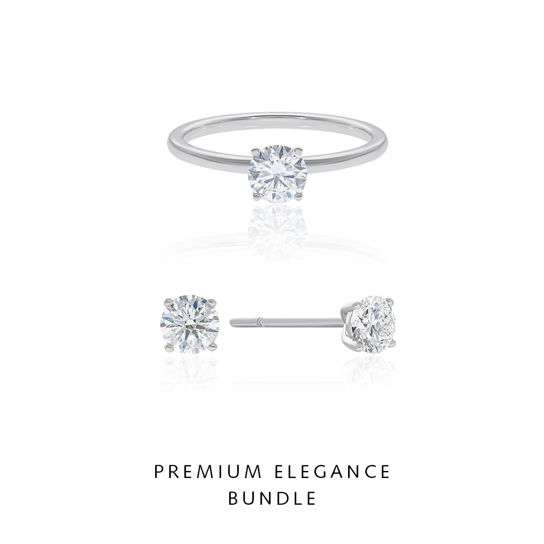 PREMIUM ELEGANCE BUNDLE Round Solitaire Studs + Round Solitaire Ring