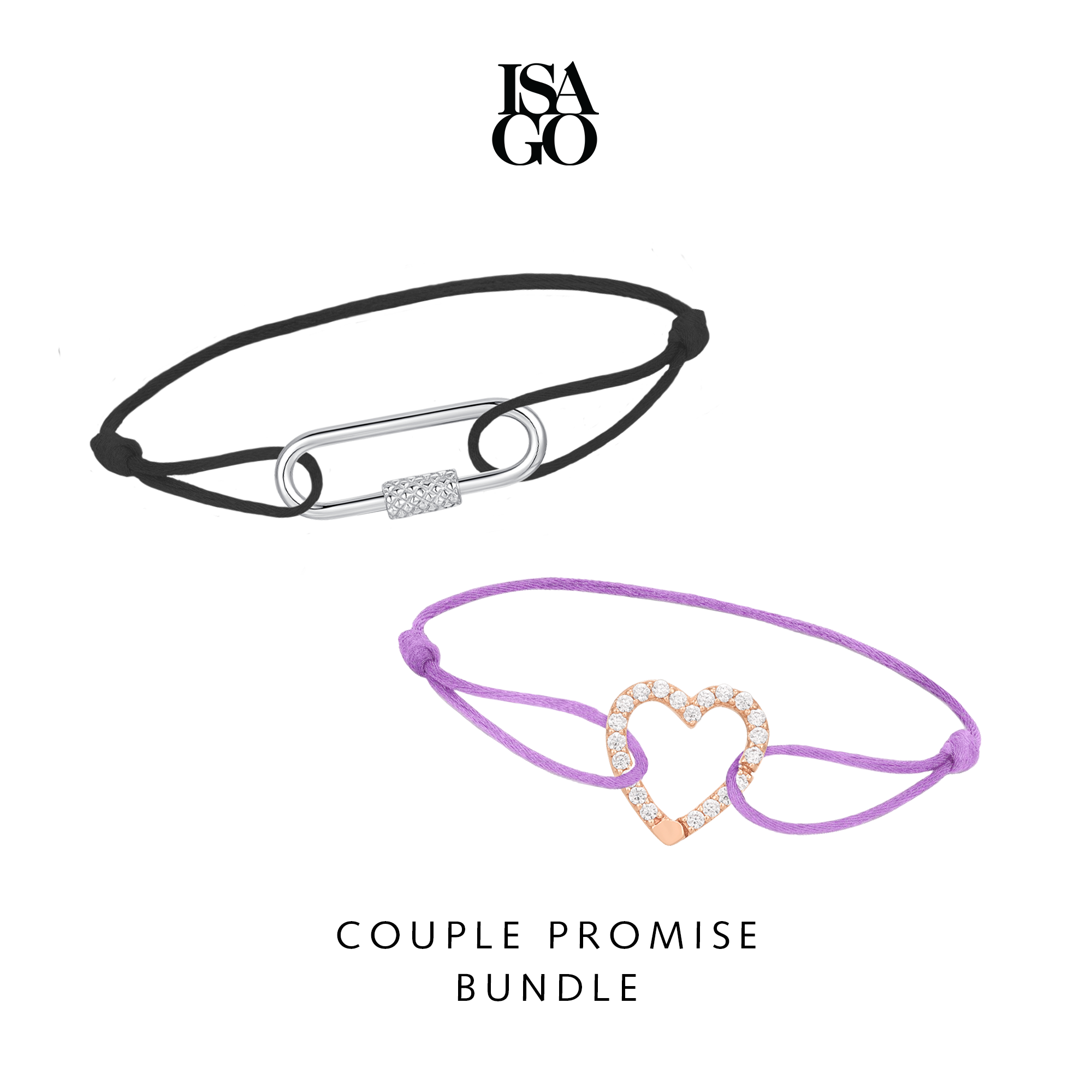 COUPLE PROMISE BUNDLE Carabiner Lock Link + Heart Pavé Link Bracelet