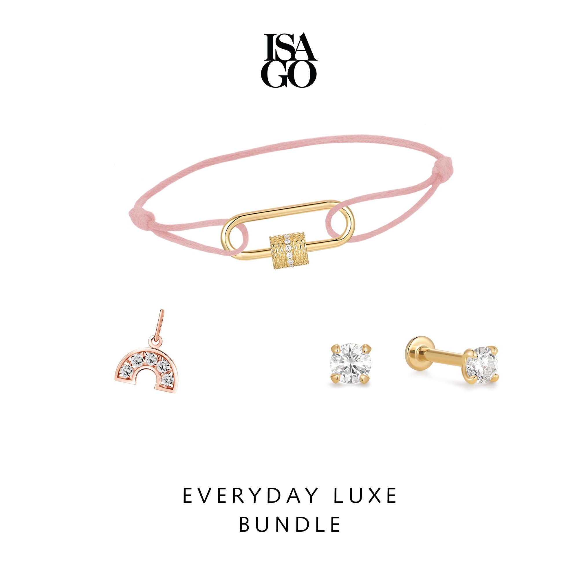 EVERYDAY LUXE BUNDLE Carabiner Pavé Link Bracelet + Rainbow Arch Pendant + Mini Round Diamond Flatback