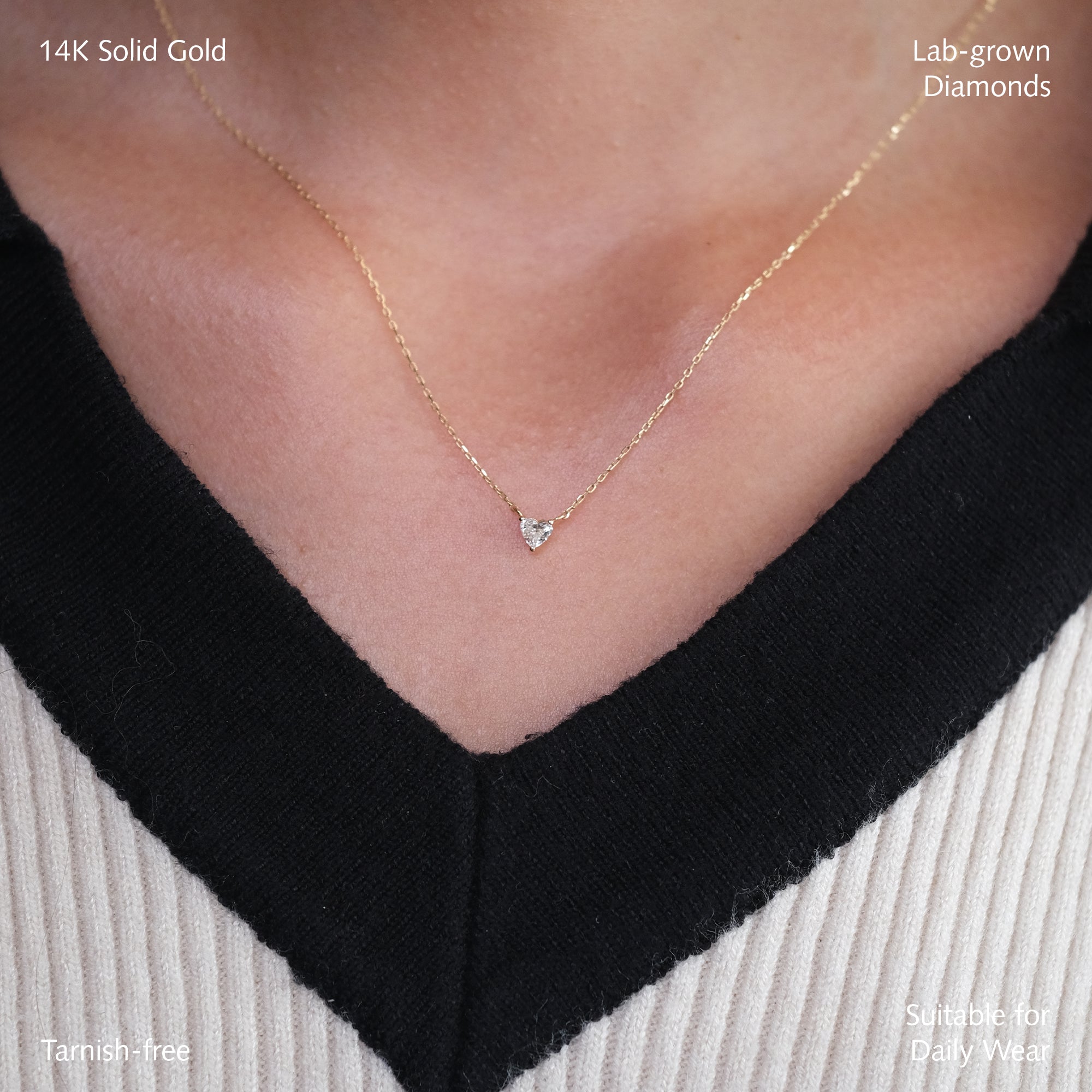 Desain elegan ini menampilkan estetika abadi dengan galeri belakang terbuka yang memungkinkan cahaya menerangi liontin berlian berbentuk hati Anda dari setiap sudut. Saat bergerak, ia memancarkan kecemerlangan yang melambangkan makna atau kenangan berharga yang dekat di hati Anda.
