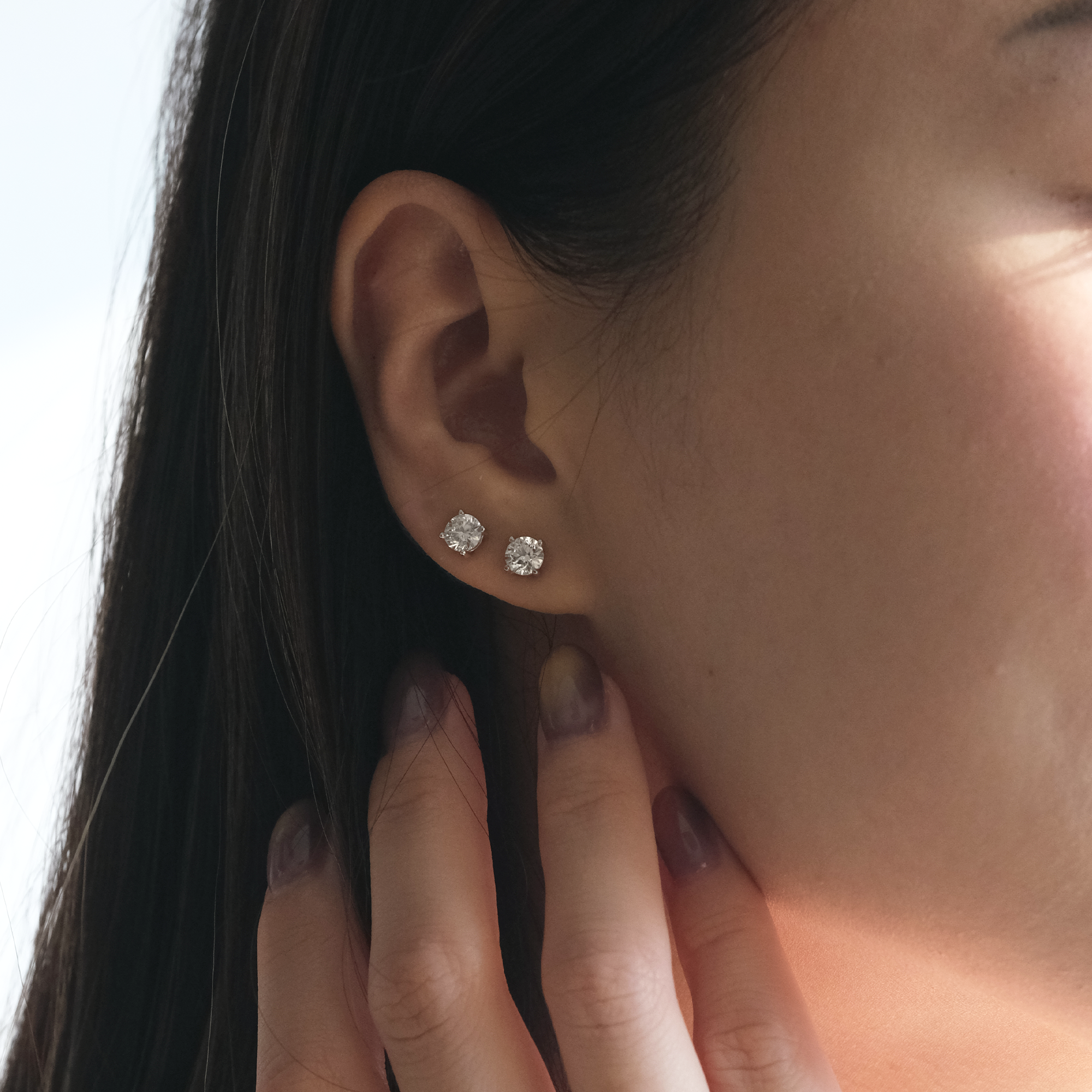 Our Round Solitaire Studs are a solid choice that will always be in style. Crafted to create a timeless silhouette, the polished 14K solid gold setting is designed to capture light from every angle, highlighting the brilliance of your diamond. Certified by IGI.