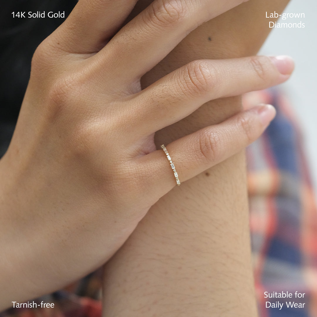 This classic ring features a twist on a traditional design, with dainty diamonds adding a touch of sparkle. Perfect for everyday wear or special occasions, this ring will make you feel elegant and sophisticated.