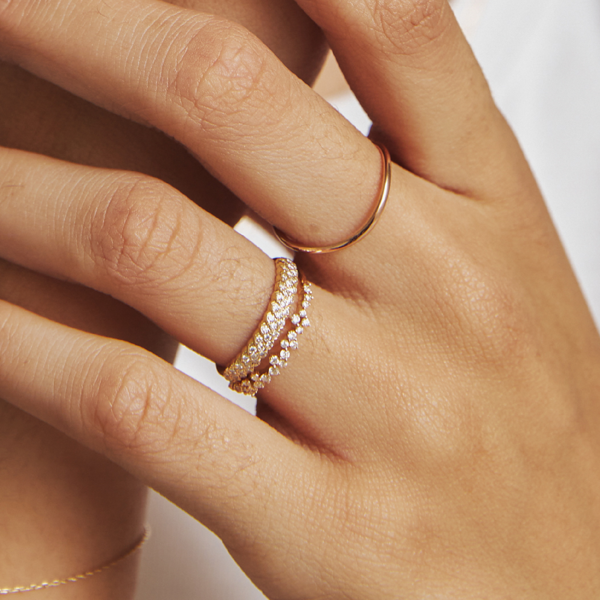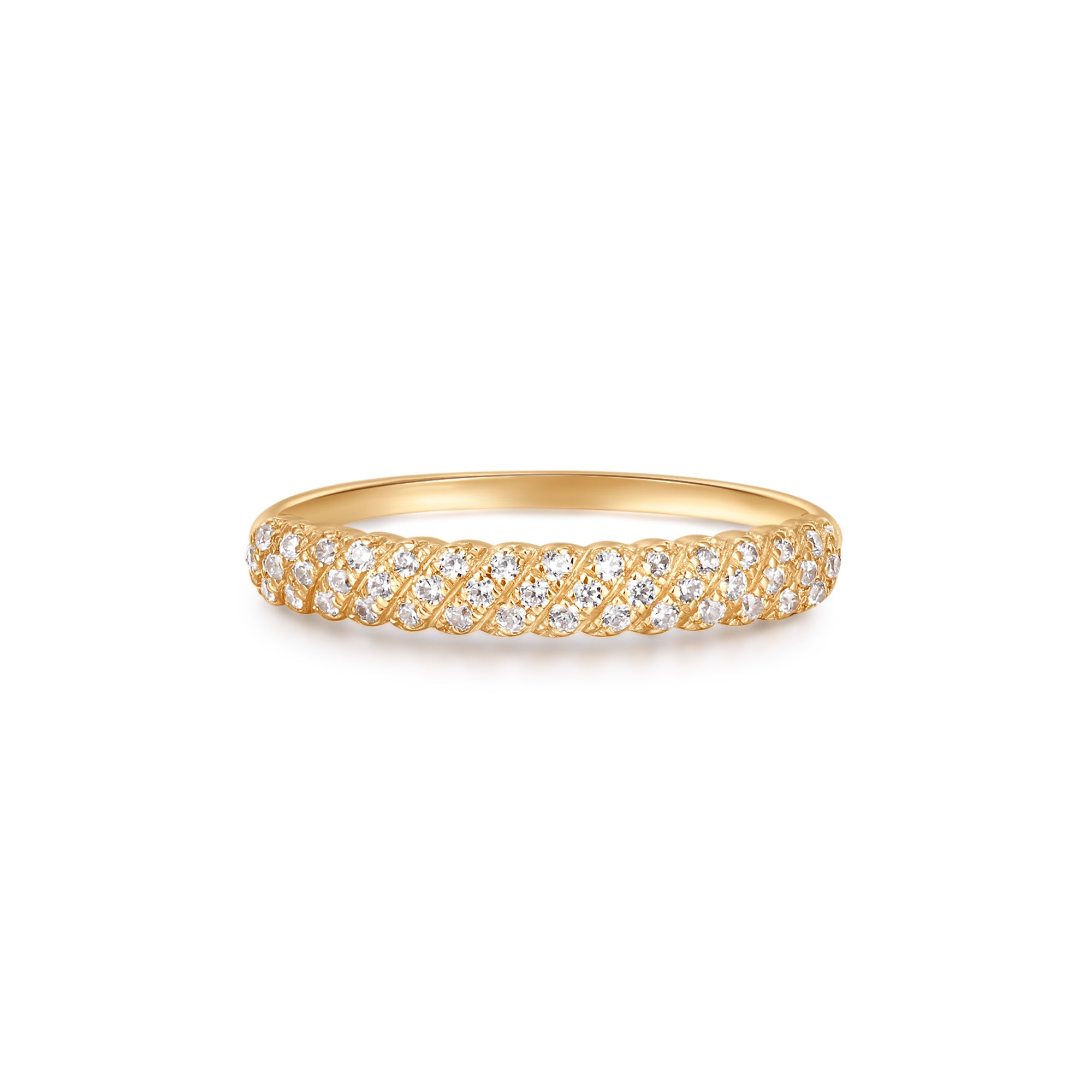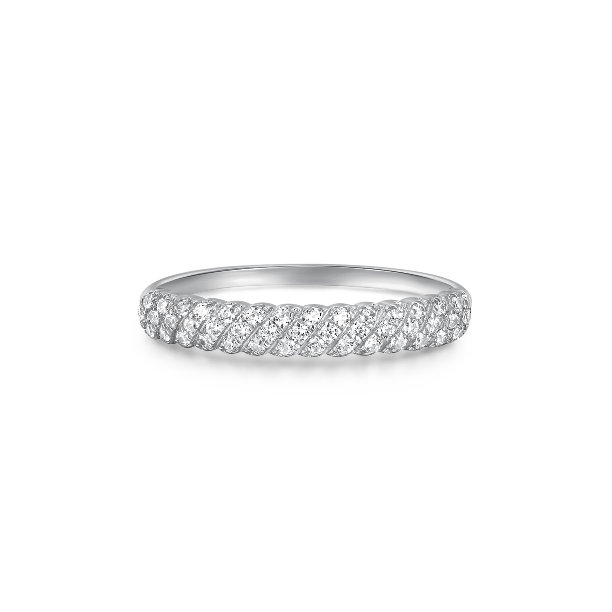 Add a twist of elegance to your style with our Twisted Pave Diamond Band. This essential piece features a unique wavy design, enhanced with a stunning pave of diamonds.